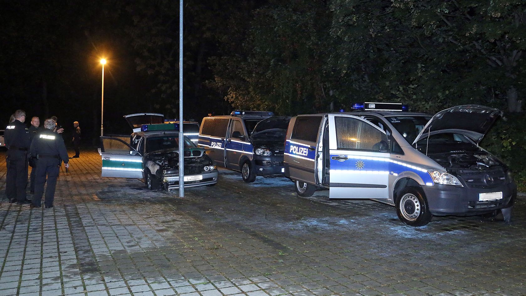 Die Ermittler gehen von einer politisch motivierten Tat aus und sehen auch einen Zusammenhang zum aktuellen Polizeieinsatz anlässlich des Tages der deutschen Einheit. Ein Bekennerschreiben liegt bislang nicht vor.