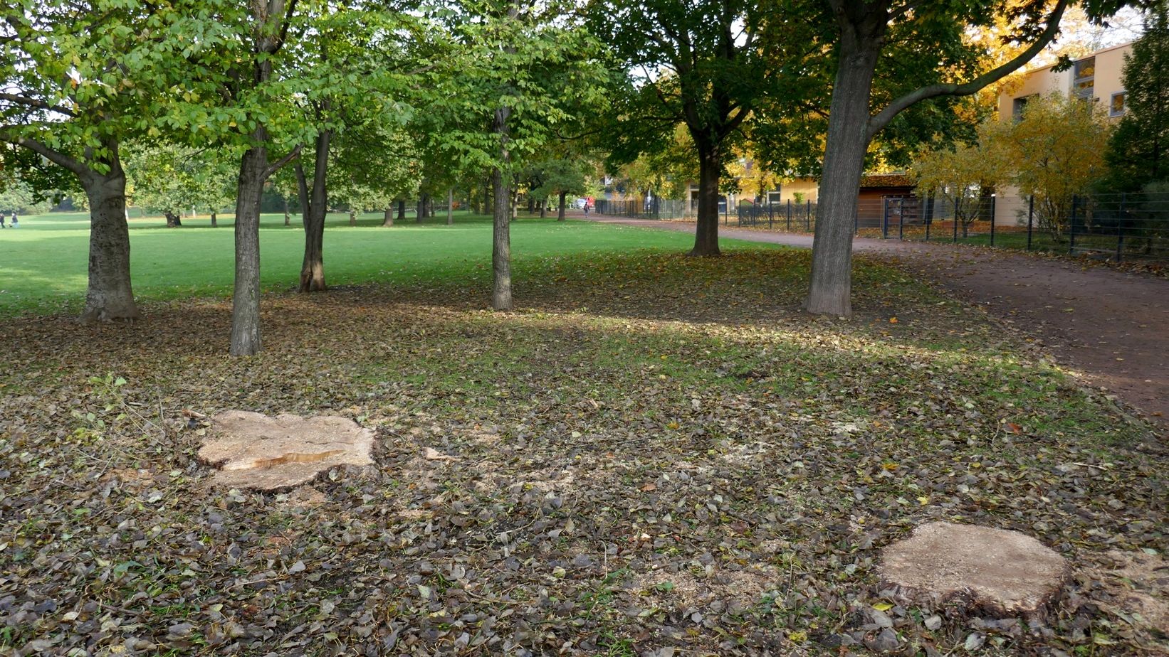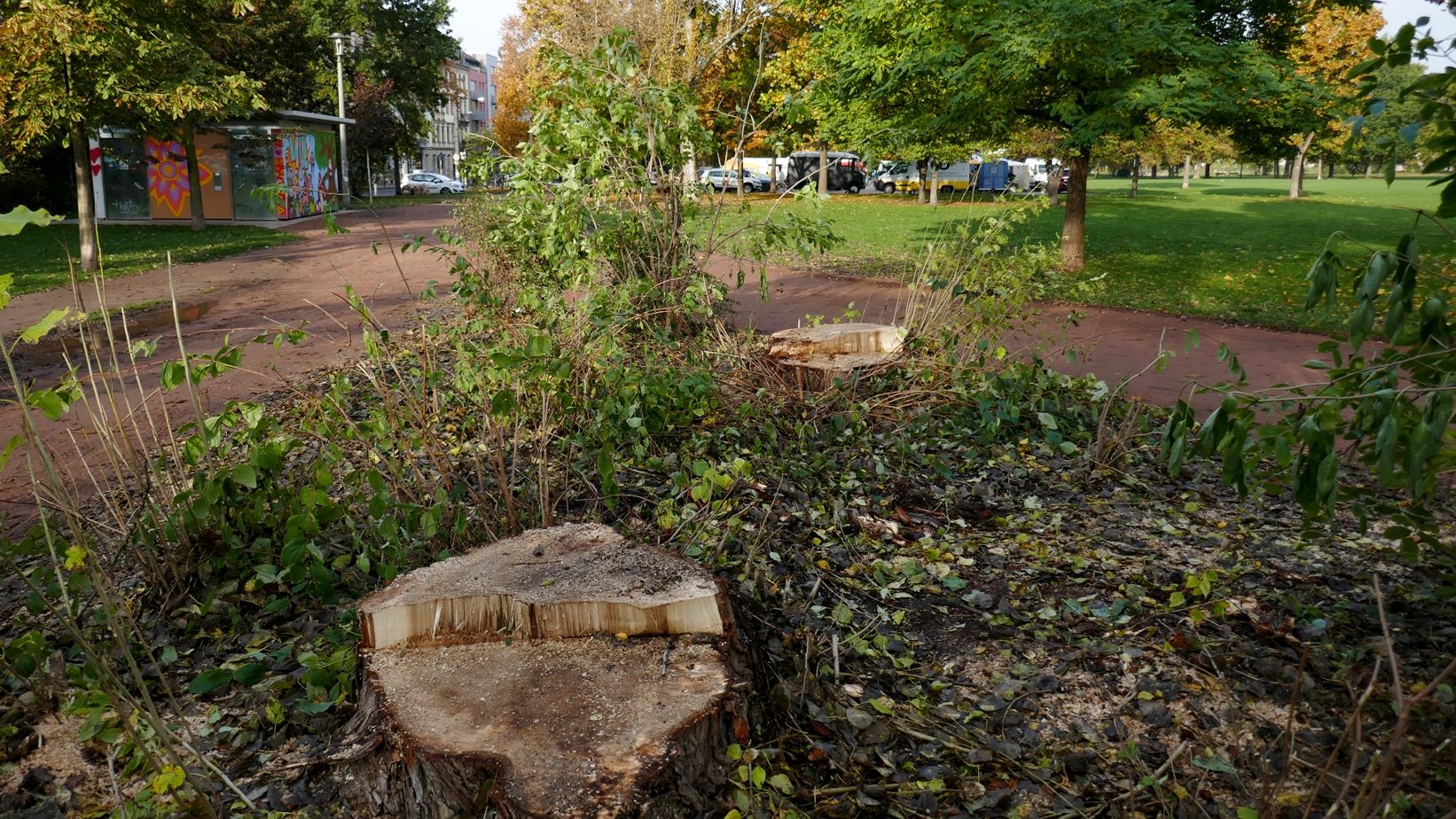 Und wo ist das Problem selbst wenn die Bäume morsch waren? Der „Gefahr“, dass mal ein Ast herunterfällt sollte sich doch jeder selbst bewußt sein. Angeblich soll der Drecksplatz ja auch ein Park sein.