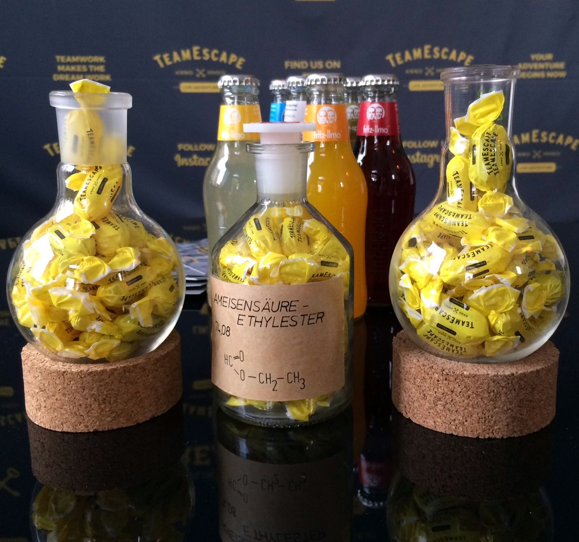 In den Flaschen sind keine Bonbons, sondern nur Fritz-Limo.