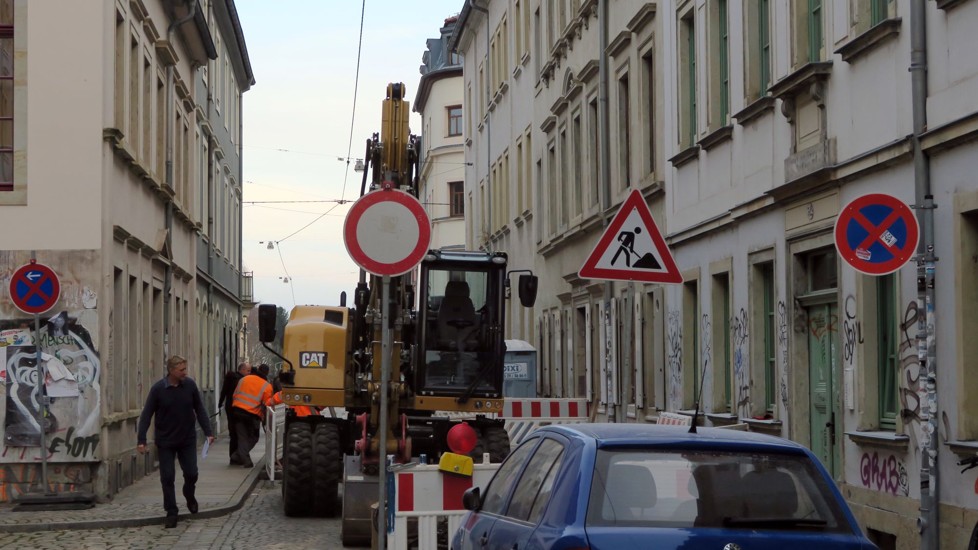 Damit wird die Verkehrssituation im Norden der Äußeren Neustadt noch ein bisschen komplizierter. Denn außerdem ist derzeit die Ausfahrt von der Görlitzer in Richtung Alaunplatz gesperrt. Der Grund sind Kabel-Arbeiten. Und ein schnelles, wenn auch illegales Ausweichen über die Sebnitzer ist nun auch nicht mehr möglich.