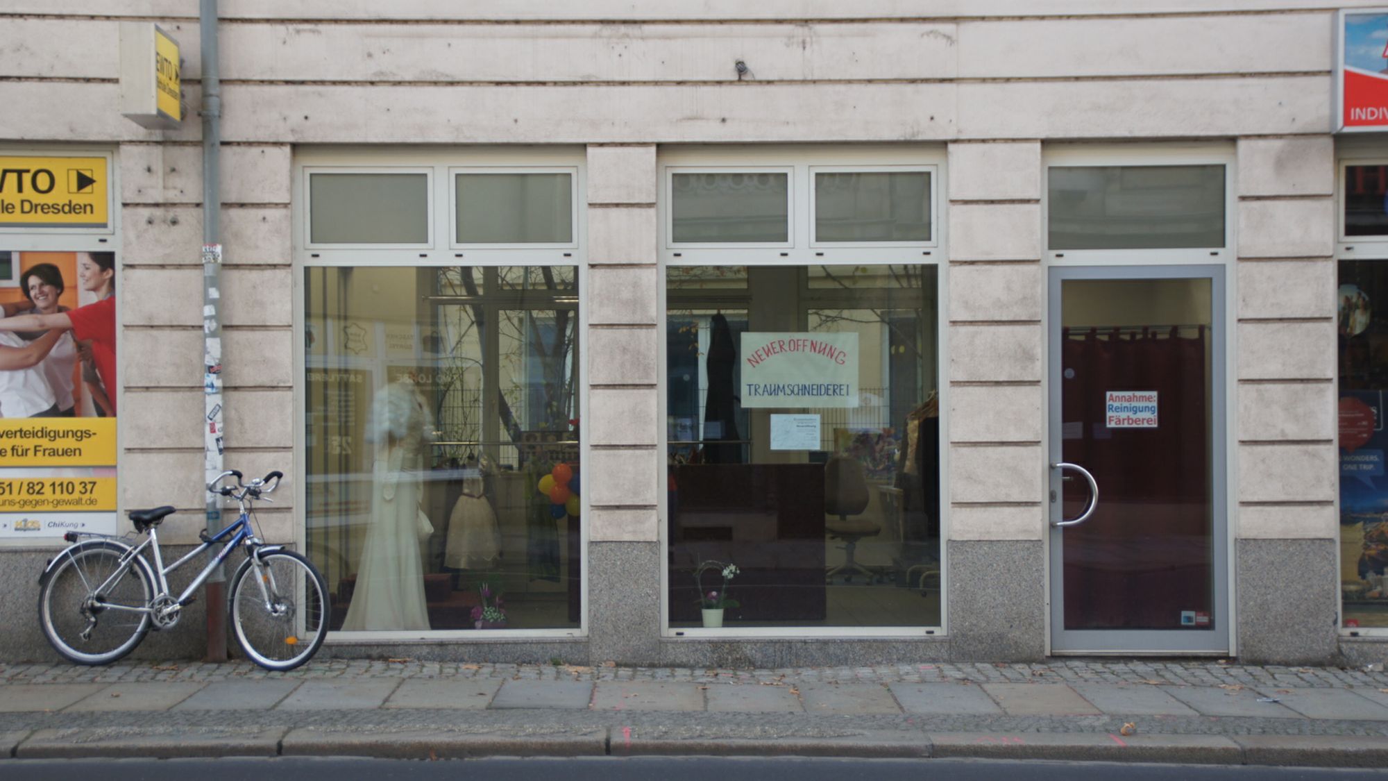 Auf der Bautzner Straße 44 hat Olga Selezniova ihre Traumschneiderei eröffnet. Die Schaufenster sehen noch etwas leer aus, aber auf den Kleiderstangen drinnen hängen schon erste Auftragswerke.