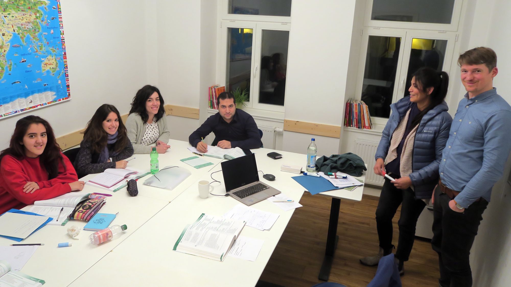 Karin Barrios hat den ehemaligen DJ-Laden in dieser Zeit in eine mulitkulturelle Begegnungsstätte verwandelt. Es gibt Sprachkurse für Flüchtlinge, für Deutsche, die ihre Fremdsprachenkenntnisse aufbauen oder vertiefen wollen und für Ausländer, die in Dresden Arbeit gefunden haben oder studieren. „Besonderheit bei uns“, erläutert Karin, „wenn jemand aus plausiblen Gründen einen Kurs nicht zu Ende führen kann, kann er beim nächsten wieder mitmachen, ohne Aufpreis.“