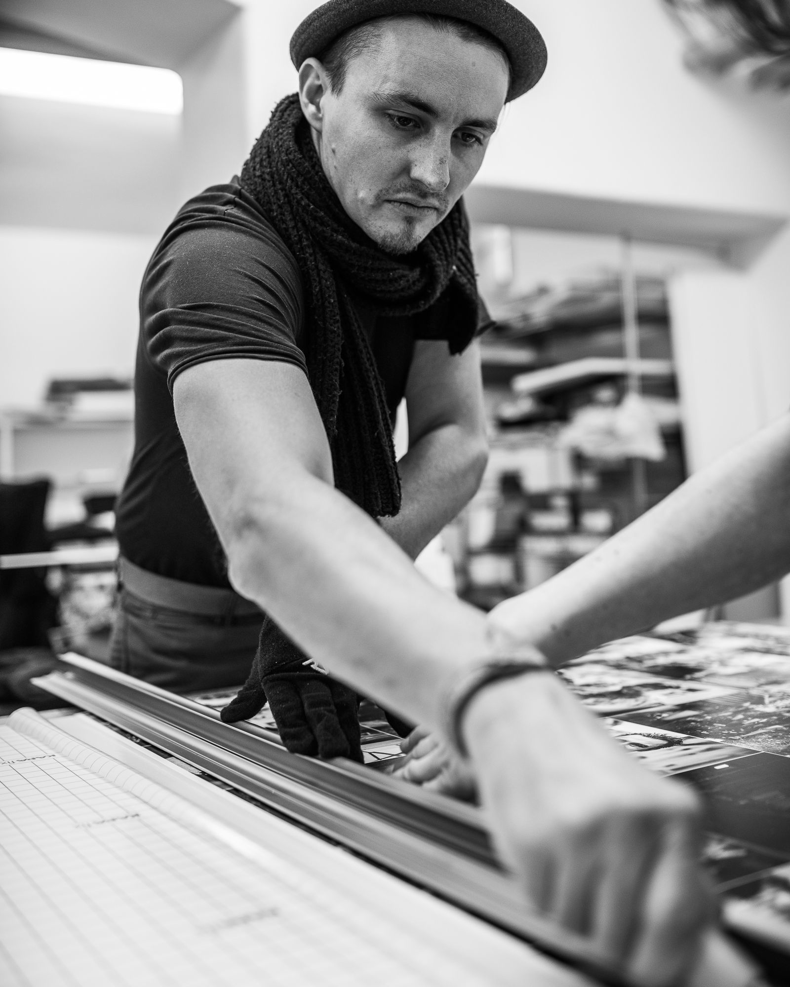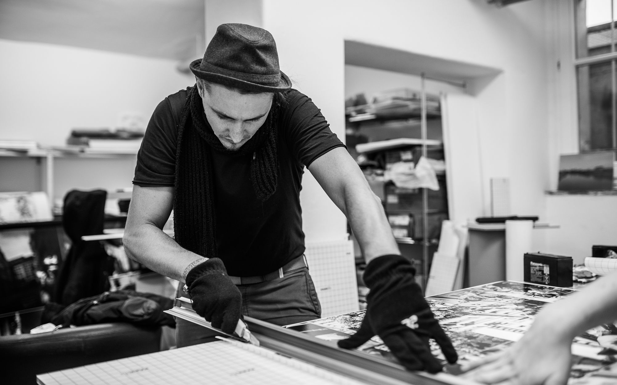 Fotograf Thomas Schlorke bei der Vorbereitung der Ausstellung.