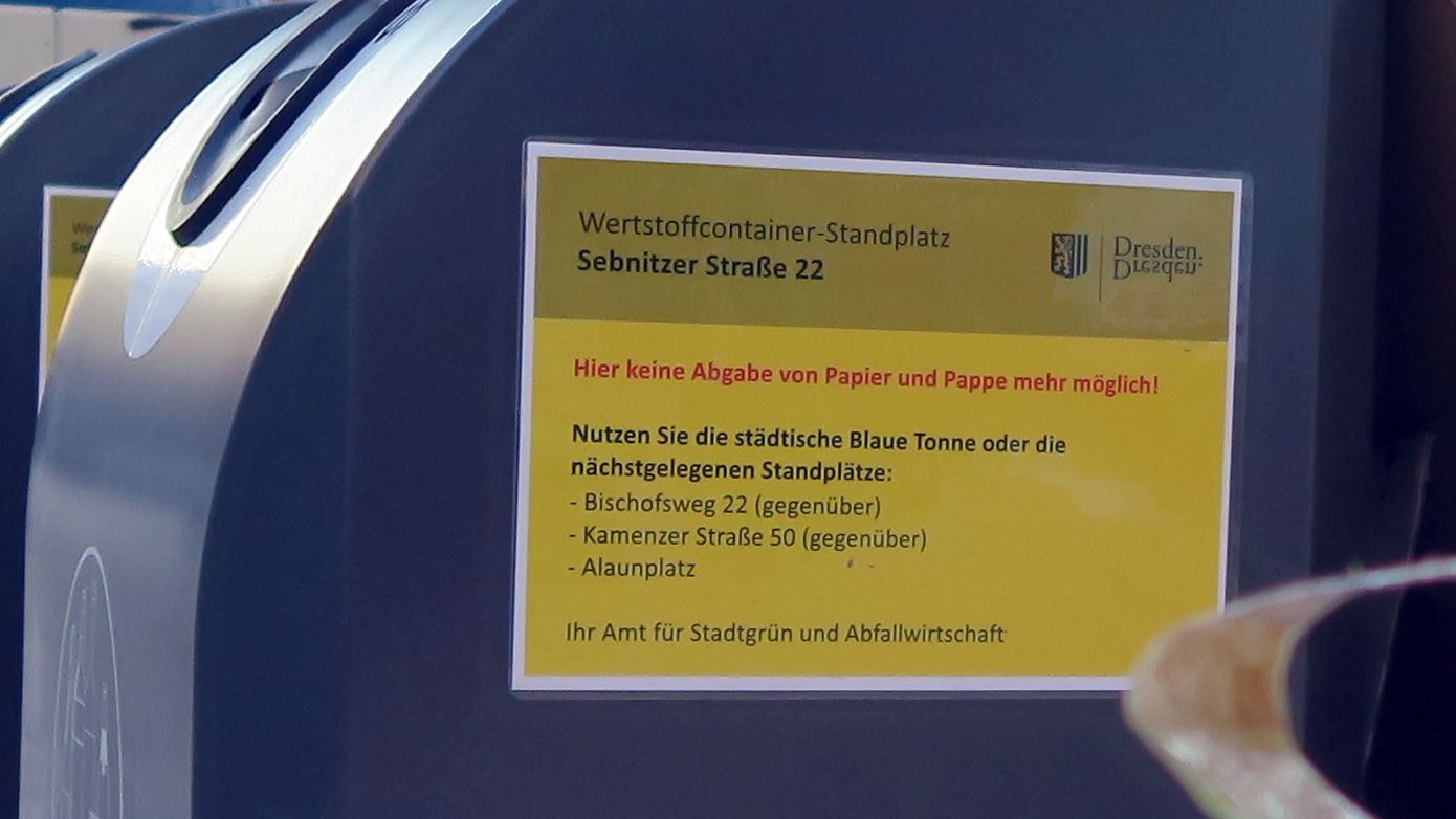 Die Anlagen an der Sebnitzer und Seifhennersdorfer waren nahezu immer voll – geniale Idee da zwei Anlagen wegzunehmen und zu hoffen, dass die Hausbesitzer jetzt blaue Tonnen bestellen (und auch Platz dafür haben) – auch wenn ich mich bisher zusammengerissen habe, finde die Form des Protests durchaus passend.