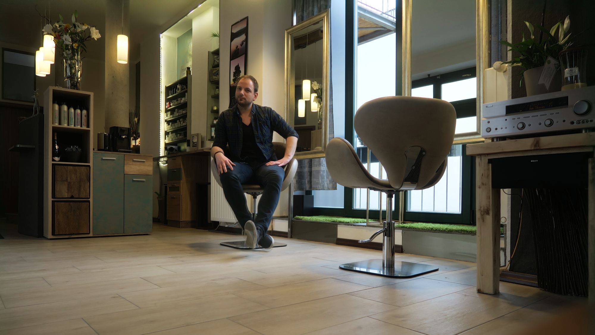 Im Gespräch betont Chris gerne, dass Friseur eben ein Handwerk ist und er sich Zeit für die Kunden nimmt. „Man muss vorher überlegen, welche Frisur passt“, das Wohlfühlen ist ihm wichtig. Deswegen gibt es auch bei jedem Haarschnitt eine Kopfmassage dazu. Das Thema Massagen will er perspektivisch sogar noch ausbauen. Erstmal startet er ohne Mitarbeiter und macht alles selbst. Seine Kundschaft ist gemischt, Hälfte Damen, Hälfte Herren. Die Preise im Laden bewegen sich im mittleren Segment. Einen Herrenschnitt mit Waschen, Fönen und Massage gibt’s für 25,50 Euro, für die Damen fängt die Abschneiderei bei 41 Euro an.