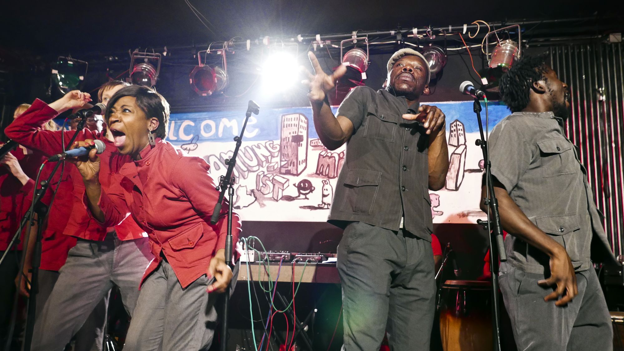 Das aktuelle Album des „Schwabbinggrad Ballett/Arrivati“ heißt „Beyond Welcome“, es handelt vom Grenzregime, von Jazz, Postpunk, elektronischer Afro-Kraut-Musik, von den Deutschen und den Nichtdeutschen, vom Zusammenkommen jenseits einer Willkommenkultur, vom Durchhalten ohne Papiere, von sozialen Tänzen, von der Nato, von Yoruba-Göttern, vom Eurozentrismus, von genialem Dilettantismus, von den Unmöglichkeiten, eine andere Welt denken, geschweige denn durchsetzen zu können.