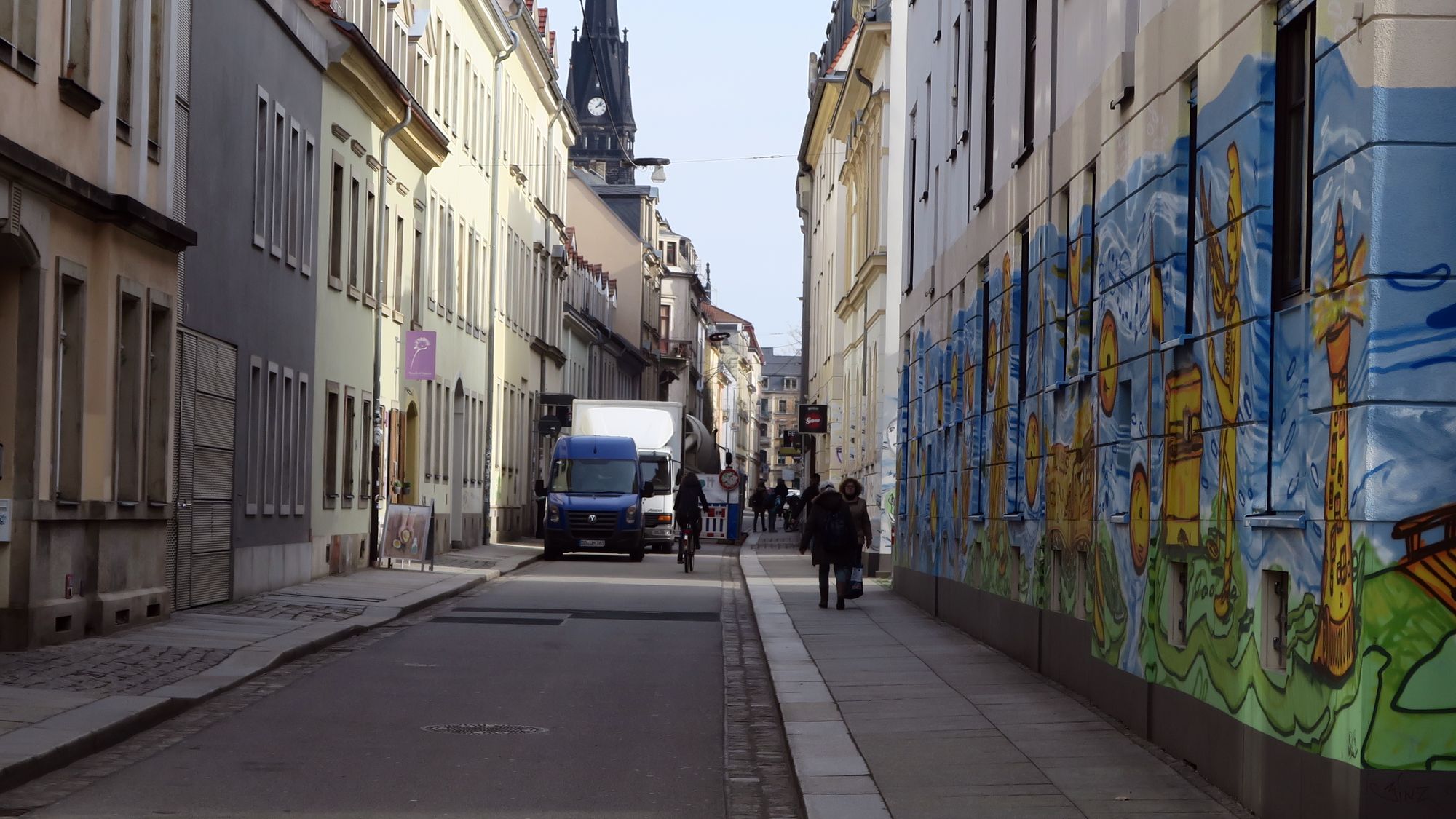 Die Straße ist auch eine wichtige Fahrrad-Achse durch die Neustadt, gerade als Alternative zur Bautzner und zur Louisenstraße (letztere immer häufiger mit auf der Straße stehenden parkenden Autos) und mit zum Teil noch mörderischem Kopfsteinpflaster). Das scheint Herrn Koettnitz mal wieder nicht zu interessieren. Ich kenne kaum eine so fahrradunfreundliche Stadt wie Dresden.