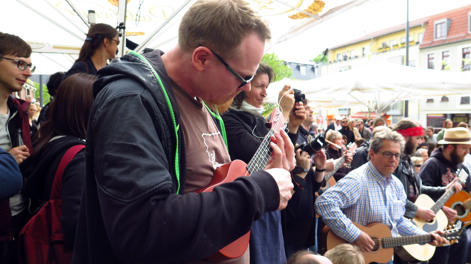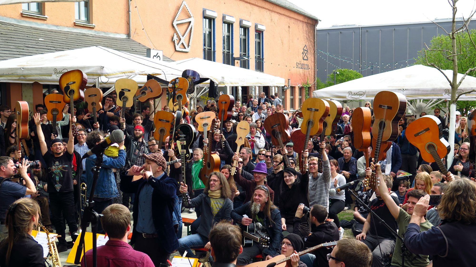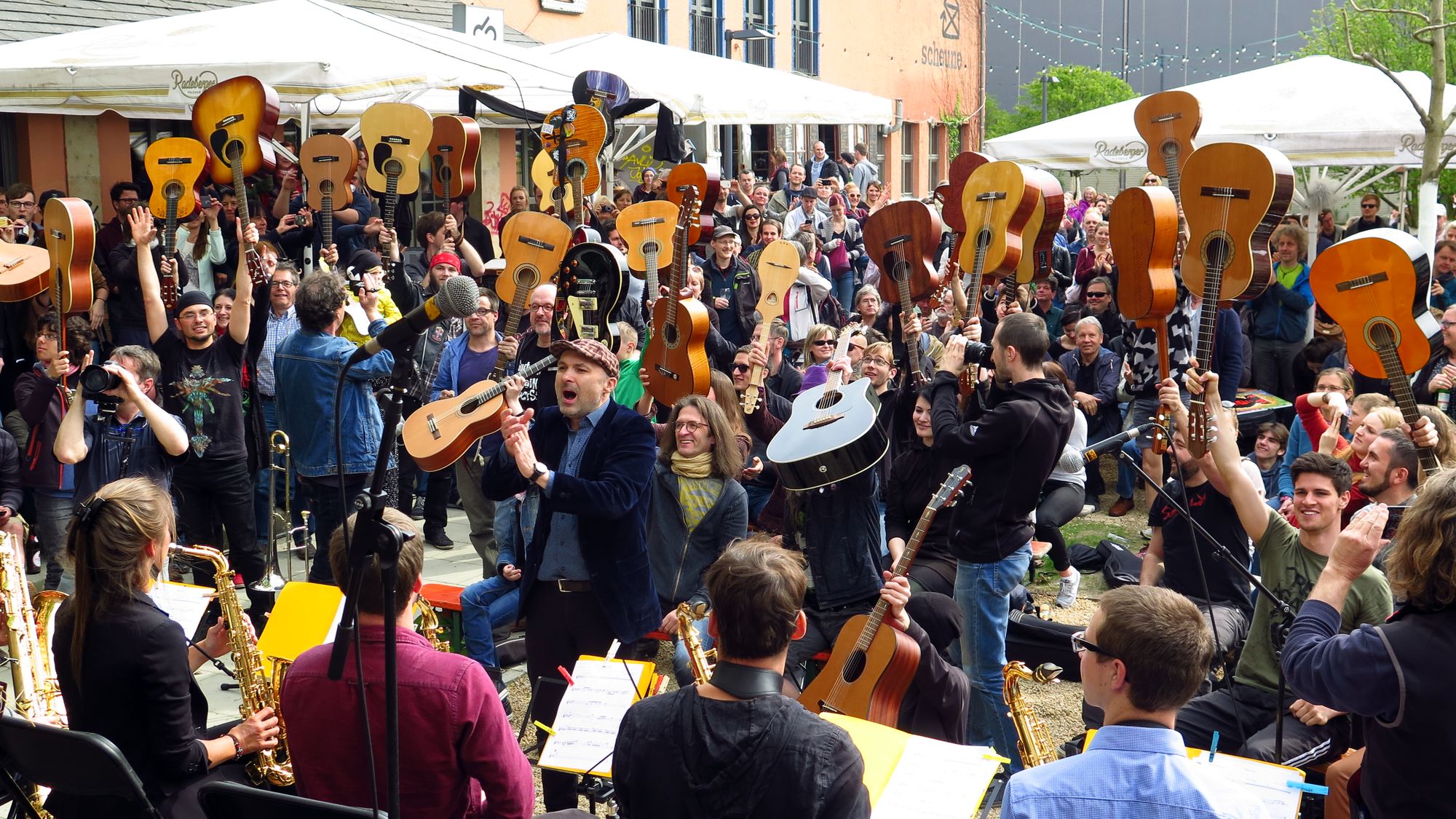 Die Teilnehmer reckten ihre Klampfen gen Himmel, damit besser gezählt werden kann.