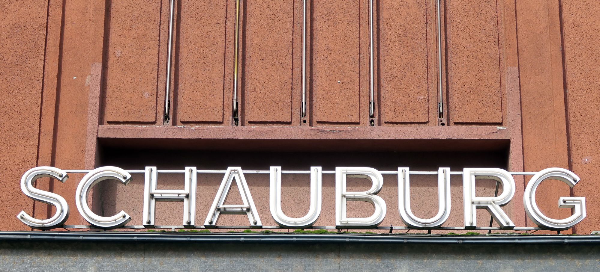 Die Schauburg wurde in den Zwanziger Jahren des vergangenen Jahrhunderts erbaut. Die erste Vorstellung fand am 15. Oktober 1927 statt. Damals war das Gebäude im Stile des „Art déco“ gestaltet, mit einem großen Saal für bis zu 1.000 Besucher. In den 1950ern wurde die Fassade umgestaltet, die rote Farbe bekam sie aber erst später. Spektakulär war vor allem die Visionsbar, die in den 70er jahren eingebaut wurde. Dort konnte man hinter einer Glasscheibe speisen, trinken und rauchen und dennoch den Film sehen.