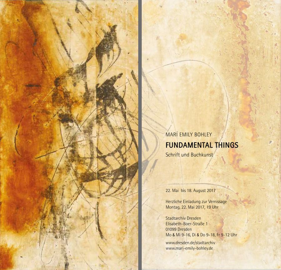 Die Ausstellung zeigt besondere Archivalien des Stadtarchivs aus dem 14. bis 16. Jahrhundert zusammen mit künstlerisch verarbeiteten Fragmenten alter Bücher und Handschriften aus China, Korea und Japan. Historische Schreibgeräte, verfremdete Zirkelkästen und Schusterleisten sowie kalligrafische Gestaltungen auf Ziegenpergamenten und großformatige handgeschöpfte Papiere aus Indien korrespondieren auf einzigartige Weise mit den Archivalien. Die Kalligrafin und Buchkünstlerin Marí Emily Bohley benutzt ihre Kenntnis historischer Schreib- und Buchbindetechniken für kraftvolle, eigene Wege und Aussagen, deren Ursprünge sich oft nur erahnen lassen.
