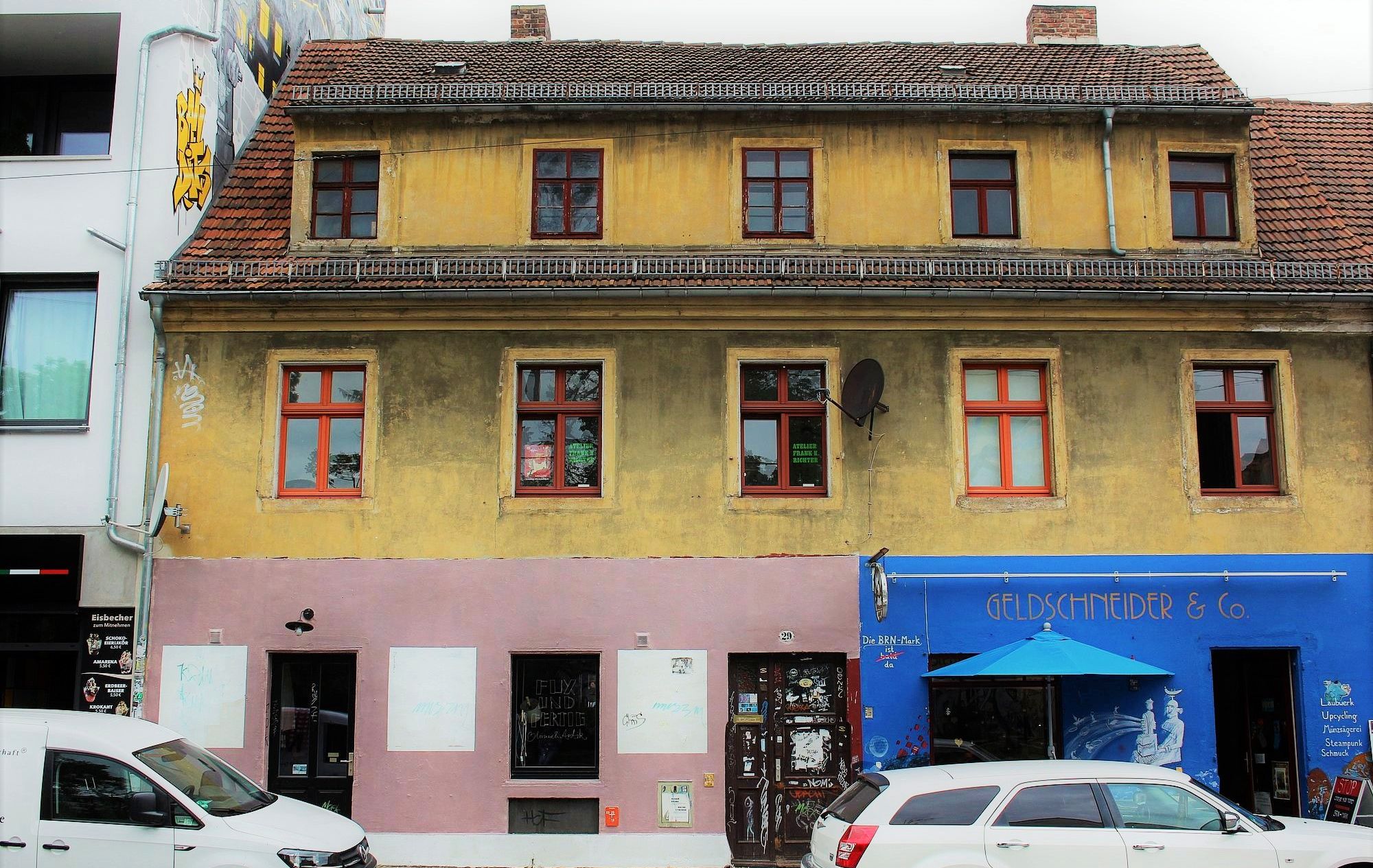 Seit rund fünf Jahren hat Frank K. Richter-Hoffmann sein Atelier in dem Haus, wo sich derzeit im Erdgeschoss das Blumengeschäft „Glück gehabt“, der Upcyclingladen „Geldschneider und Co.“ und das Bekleidungsgeschäft „The Spot“ befinden. In den oberen Etagen gibt es noch weitere Ateliers sowie Arbeitsräume von Architekten. Von seinem Atelier aus blickt Frank K. Richter-Hoffmann direkt auf die Alaunstraße. Das bunte Treiben der Neustadt findet er sehr anregend für die eigene Arbeit.