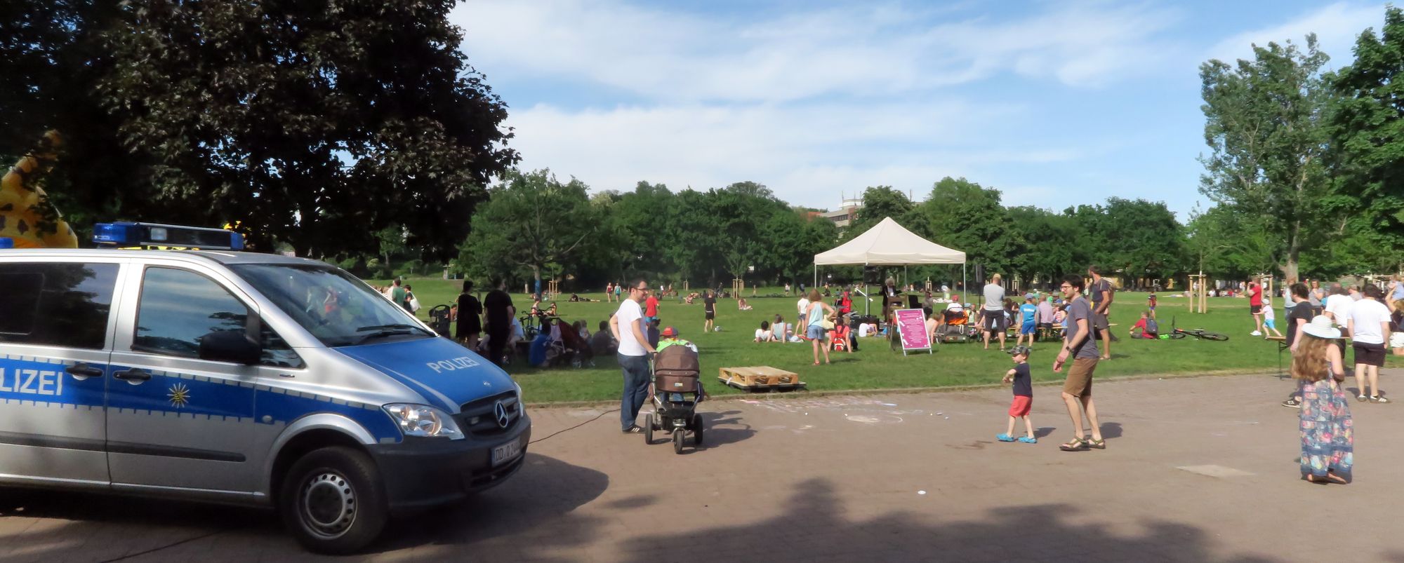 Zu Beginn ist immer wieder der Stromkeis zusammengebrochen beim Anschalten eines neuen Verbrauchers, somit haben die Hüpfburgen die Kinder begraben.