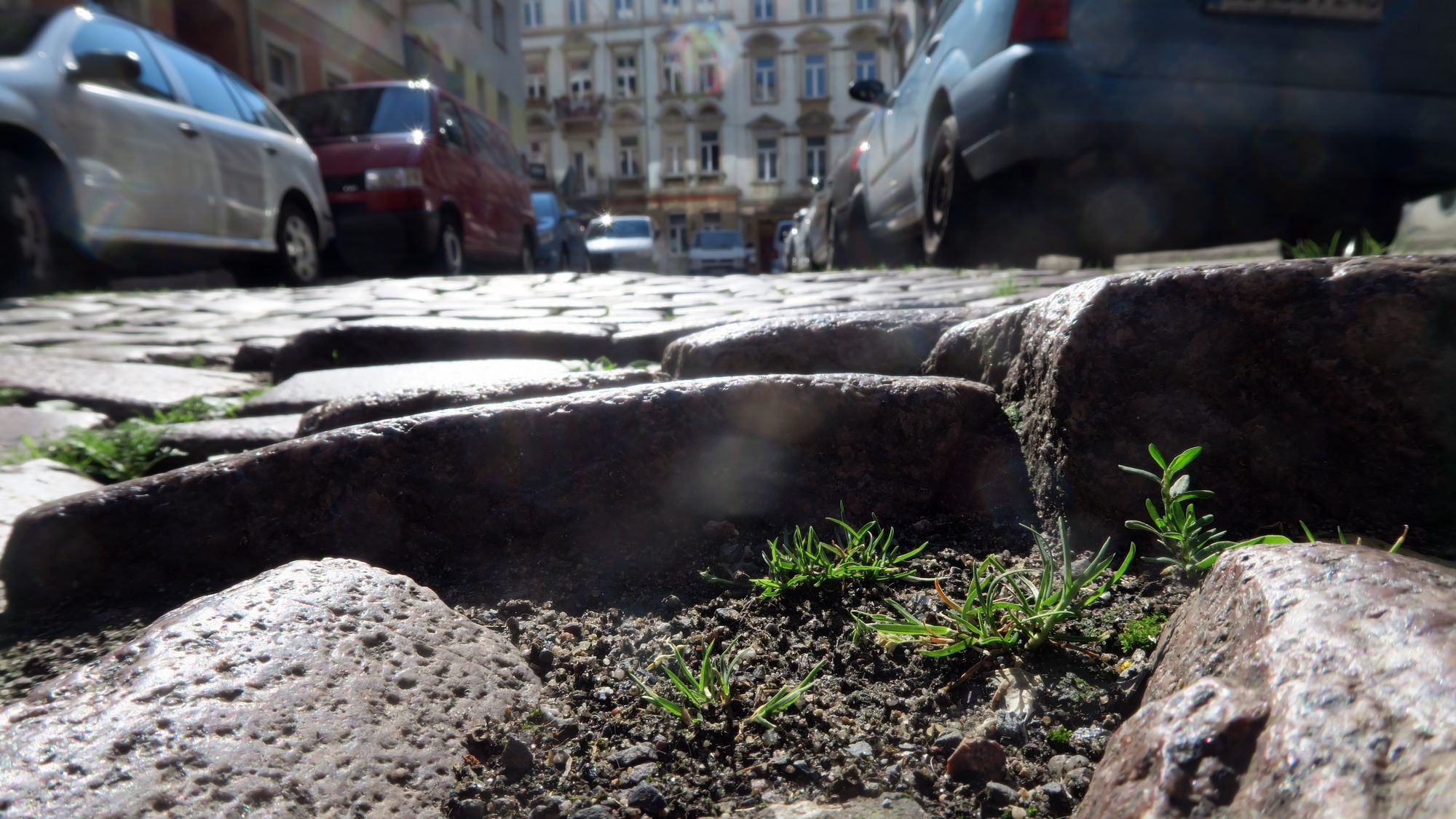 Über derlei Maßnahmen können die Bewohner der Jordanstraße nur müde lächeln, dort muss kein gärtnerisches Geschick gezeigt werden. Die Büsche wachsen ganz von selbst zwischen den Pflastersteinen hervor.