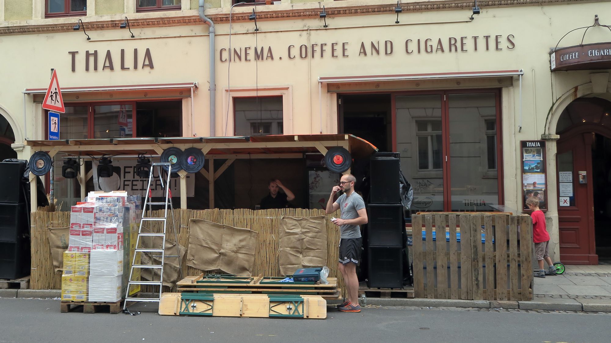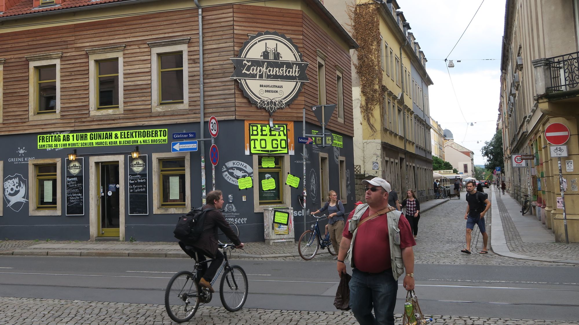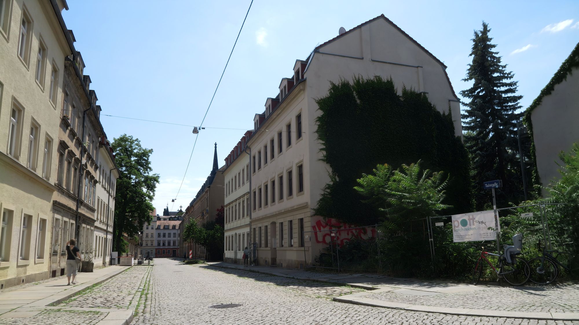 Gut, die Menschenmassen kommen sicher noch, am Abend. Ist ja jeden BRN-Freitag so, aber Straßen so ganz ohne Stände, das ist neu. Auf der Talstraße glänzte nur das Pflaster, die Schönfelder zeigte sich auch sehr nackig, auf der Sebnitzer nur vereinzelt Stände. Selbst auf der oberen Alaunstraße war noch einiges frei.