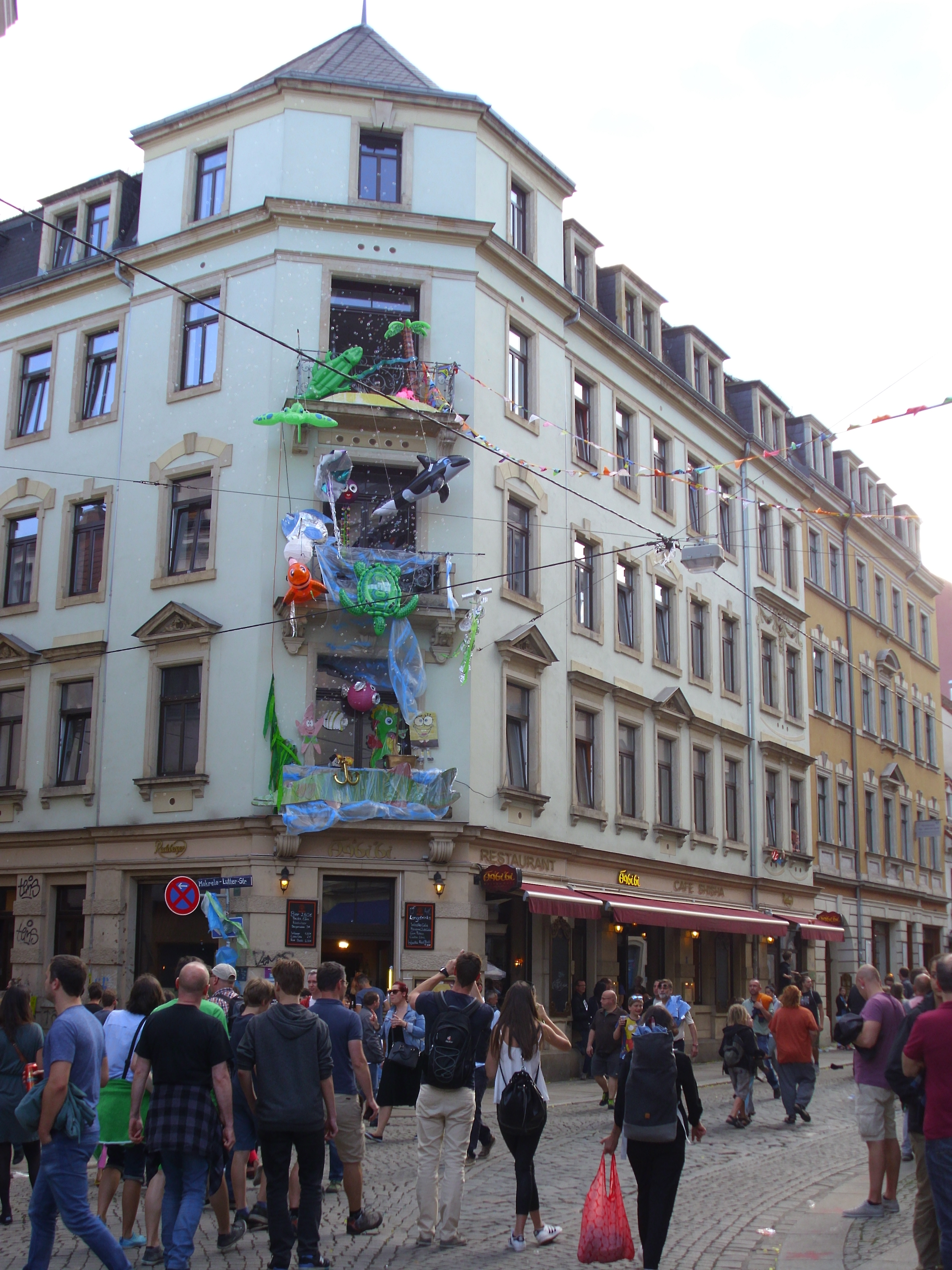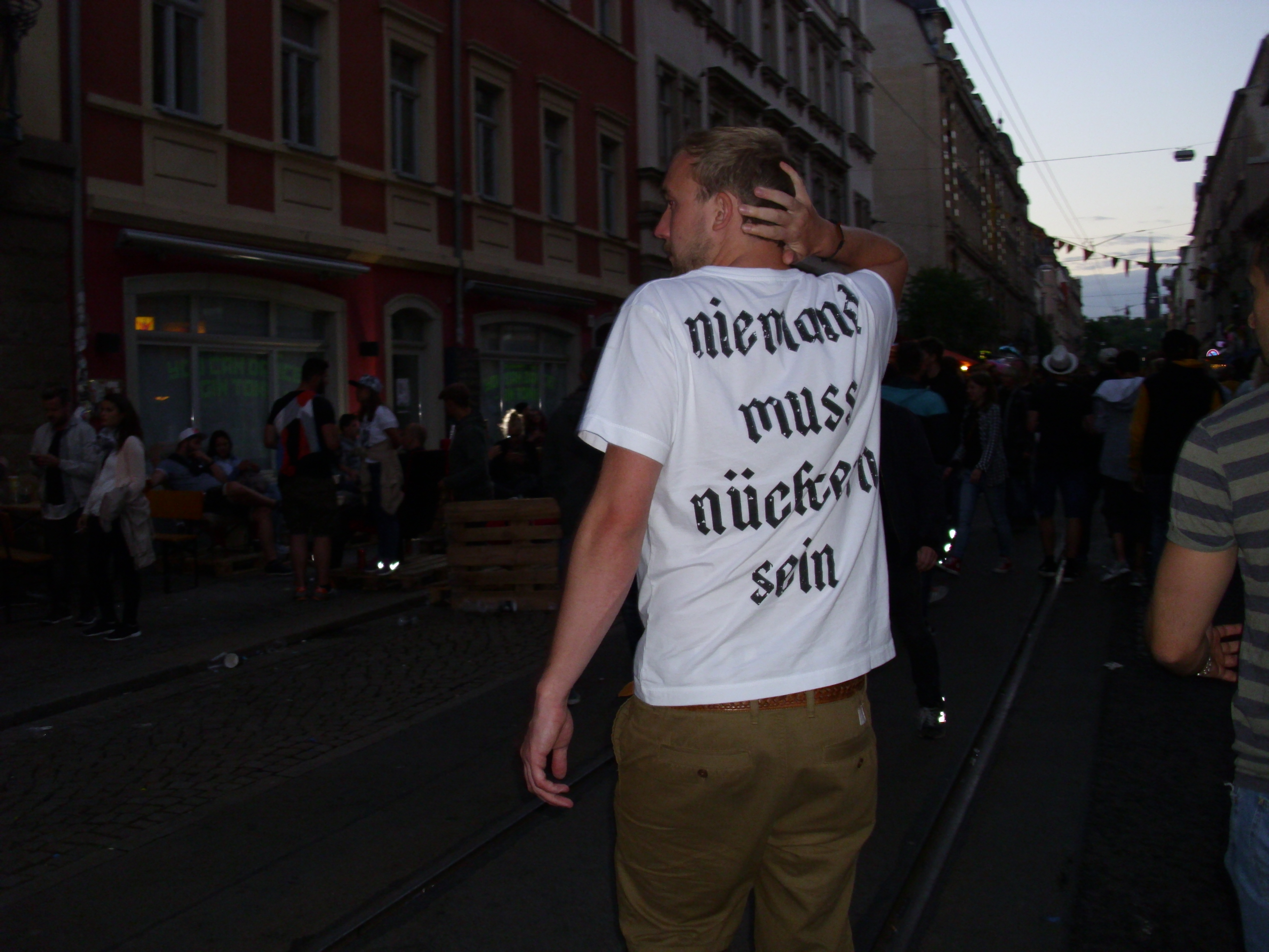 Wär allerdings schön, wenn auf der Sebnitzer nicht auch ein ständiger Battle of Musics stattfände, und wenn die Straße nachts nicht bis nach halb drei beschallt würde … (sagt ein langjähriger Anwohner, dem schon seit Jahren vor allem die Menge an Musikquellen auf den Docht geht. Muss man denn überall mindestens 2 verschiedene Musiken hören können?)