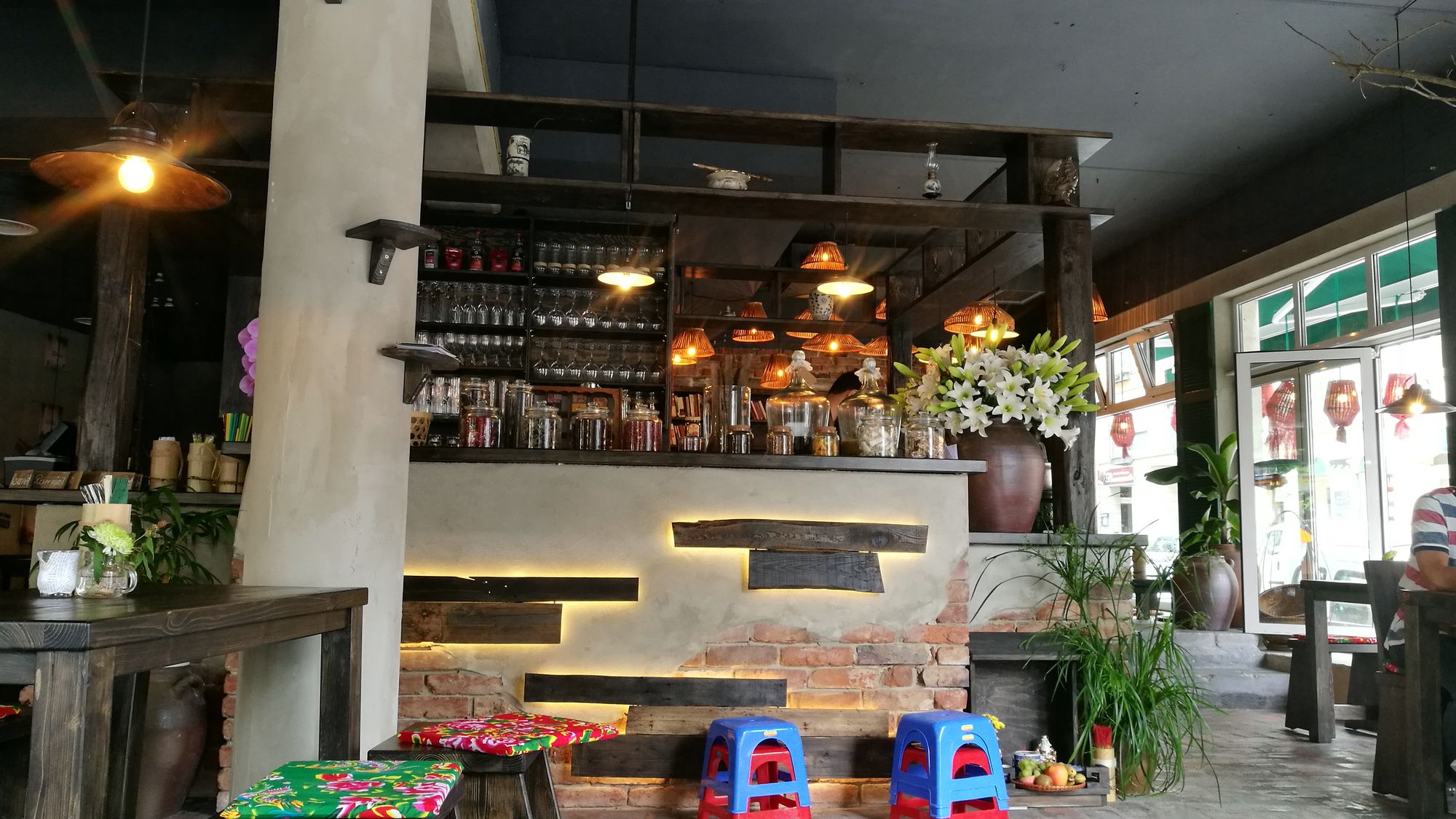 Die Einrichtung drinnen soll an das Vietnam der 70er und 80er Jahre des vorigen Jahrhunderts erinnern. Man sitzt wie in einem Straßencafé. Die Speisekarte kommt in der Aufmachung einer Boulevard-Zeitung daher. Sehr retro, aber leider ein bisschen unübersichtlich.