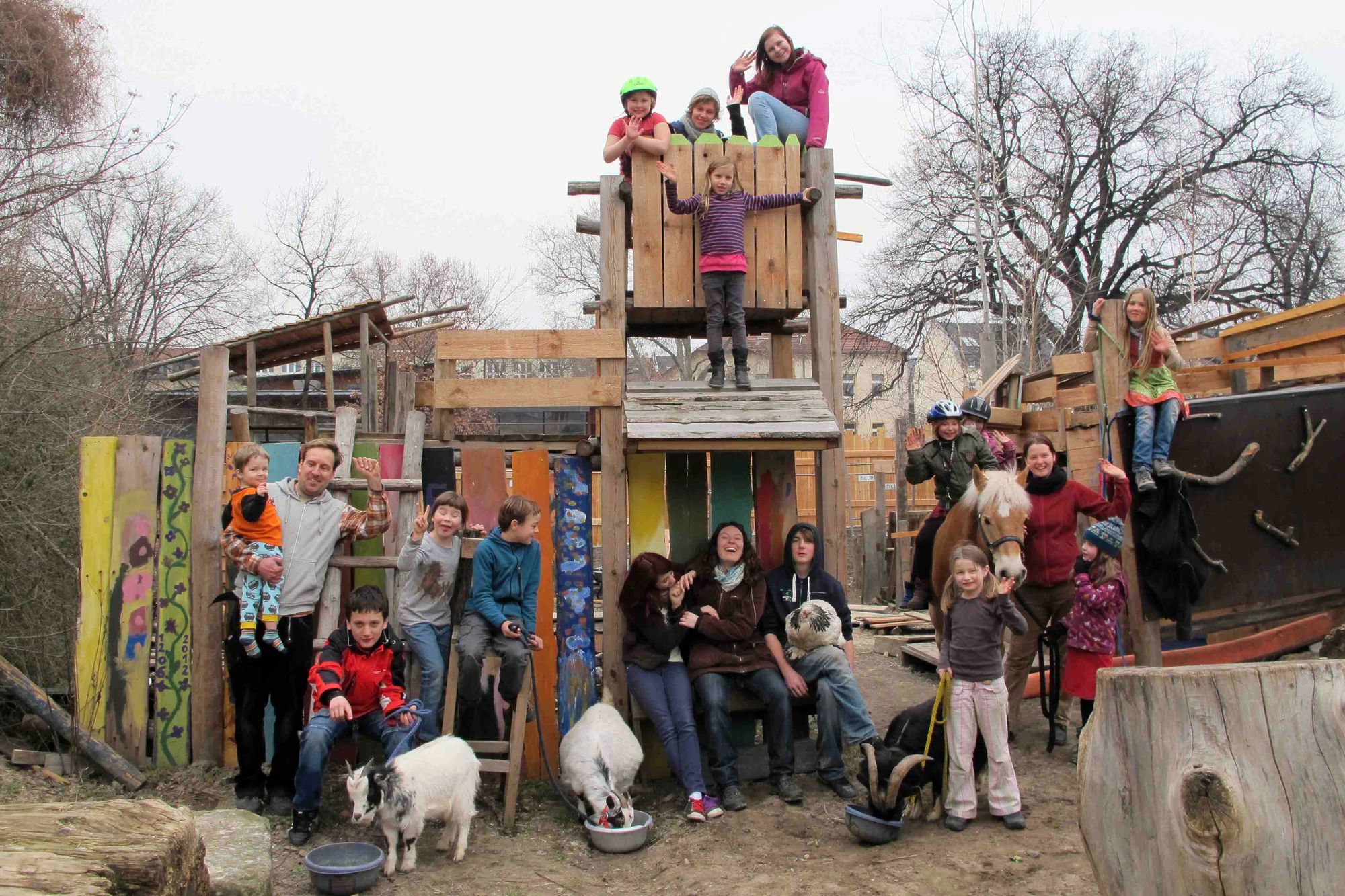 Plötzlich standen auf der Fläche zwischen Kamenzer und Görlitzer ein paar Bauwagen, die ersten Buden und ein kleines Hüttchen. Was nur wenige wussten, Jens kam im Auftrag des Jugendamtes. Nach dem ersten Pferd, das auf den Namen „Pan“ hörte, folgten immer mehr Tiere – Schafe, Hunde, Ziegen, Hühner und sogar Schweine. Der Abenteuerspielplatz „Panama“, anfangs nur als Sommerprojekt war geboren.