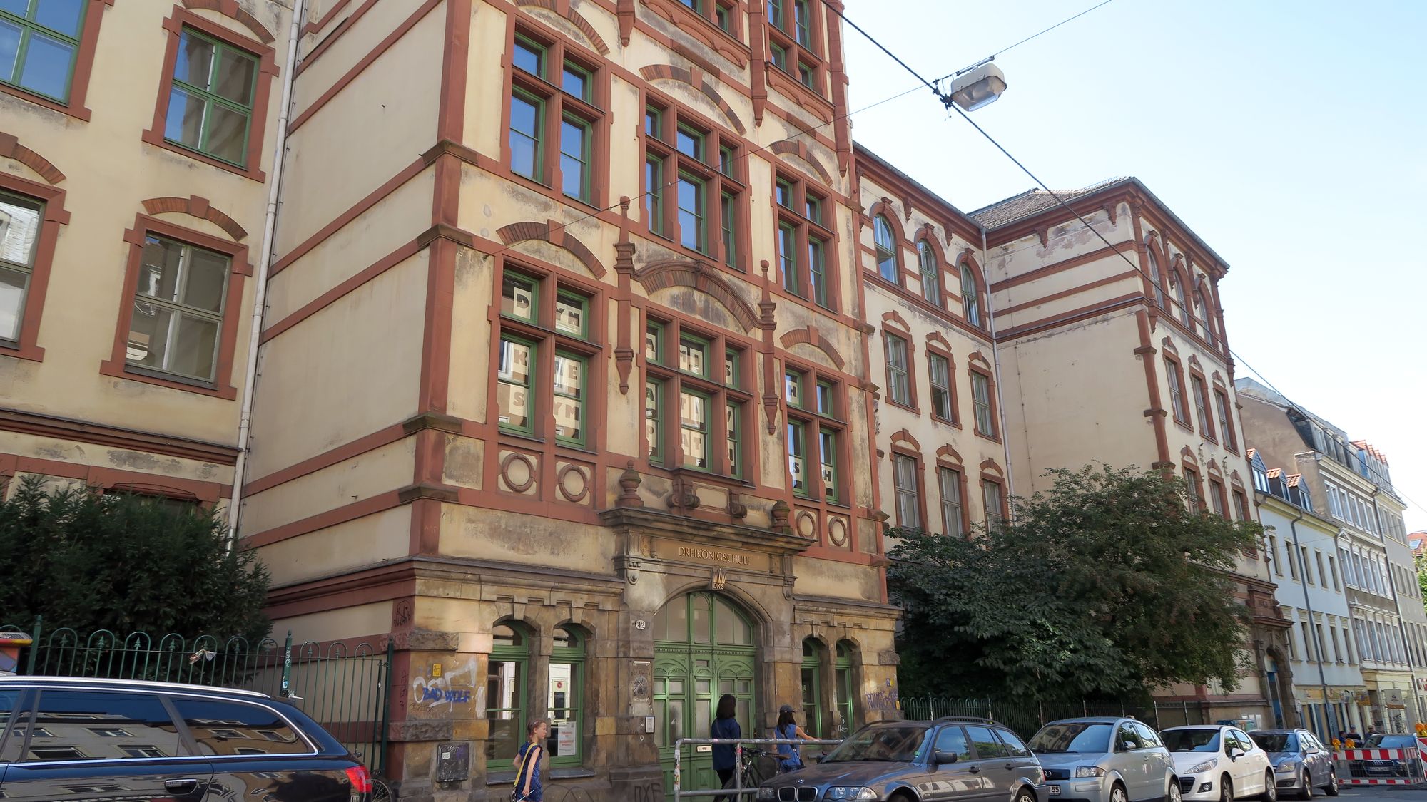Das Gebäude ist noch älter, entstand zur Gründerzeit, Ende des 19. Jahrhunderts. 1996 wurden die Gebäude im Hof, vormals 13. Mittelschule und St.-Benno-Gymnasium, mit eingegliedert. Die ursprüngliche Dreikönigschule kann auf eine noch längere Tradition zurück blicken, wurde schon 1407 in Altendresden (der heutigen Inneren Neustadt) gegründet. Die Schule brannte in der Bombennacht des 13. Februar 1945 völlig aus.