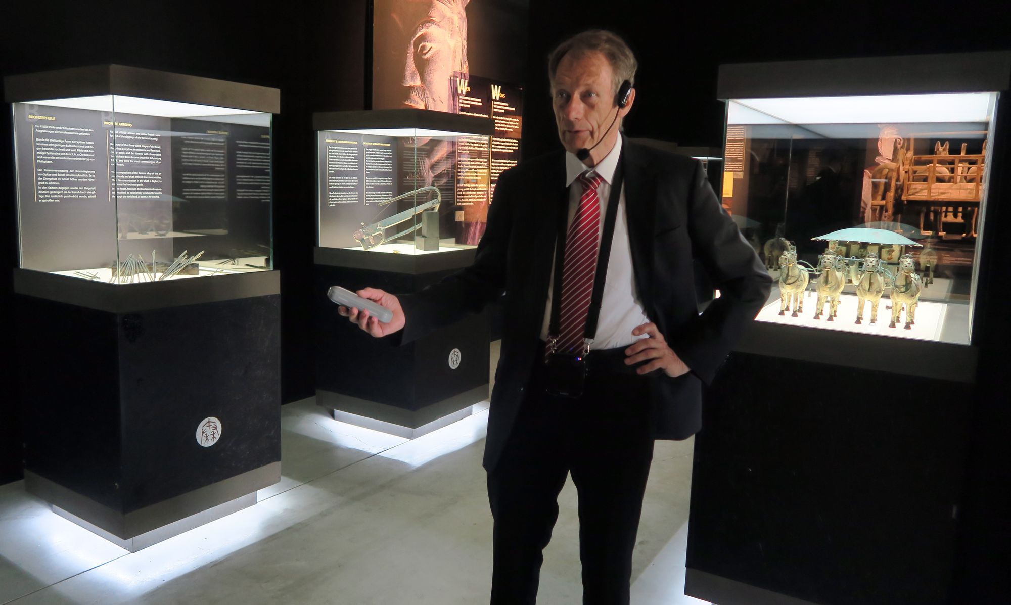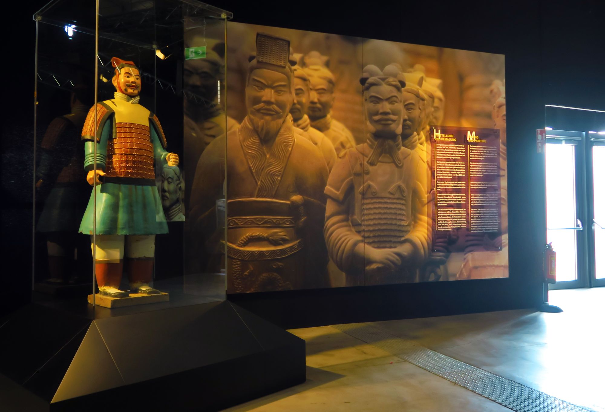 Gezeigt werden rund 150, zum Teil lebensgroße Terrakotta-Krieger, dazu Grafiken, Modelle von Grabanlagen und Filmsequenzen. Der Besucher soll sich in die Zeit des ersten Kaisers von China vor rund 2200 Jahren zurückversetzen. Insgesamt sind 250 Exponate auf 1.400 Quadratmeter Ausstellungsfläche zu sehen. Allesamt originalgetreue Nachbildungen der 1974 in China gefundenen Terrakottafiguren, die aufgestellt wurden, um das Grab des ersten chinesischen Kaisers Qin Shi Huang Di (259–210 v. Chr.) zu schützen.