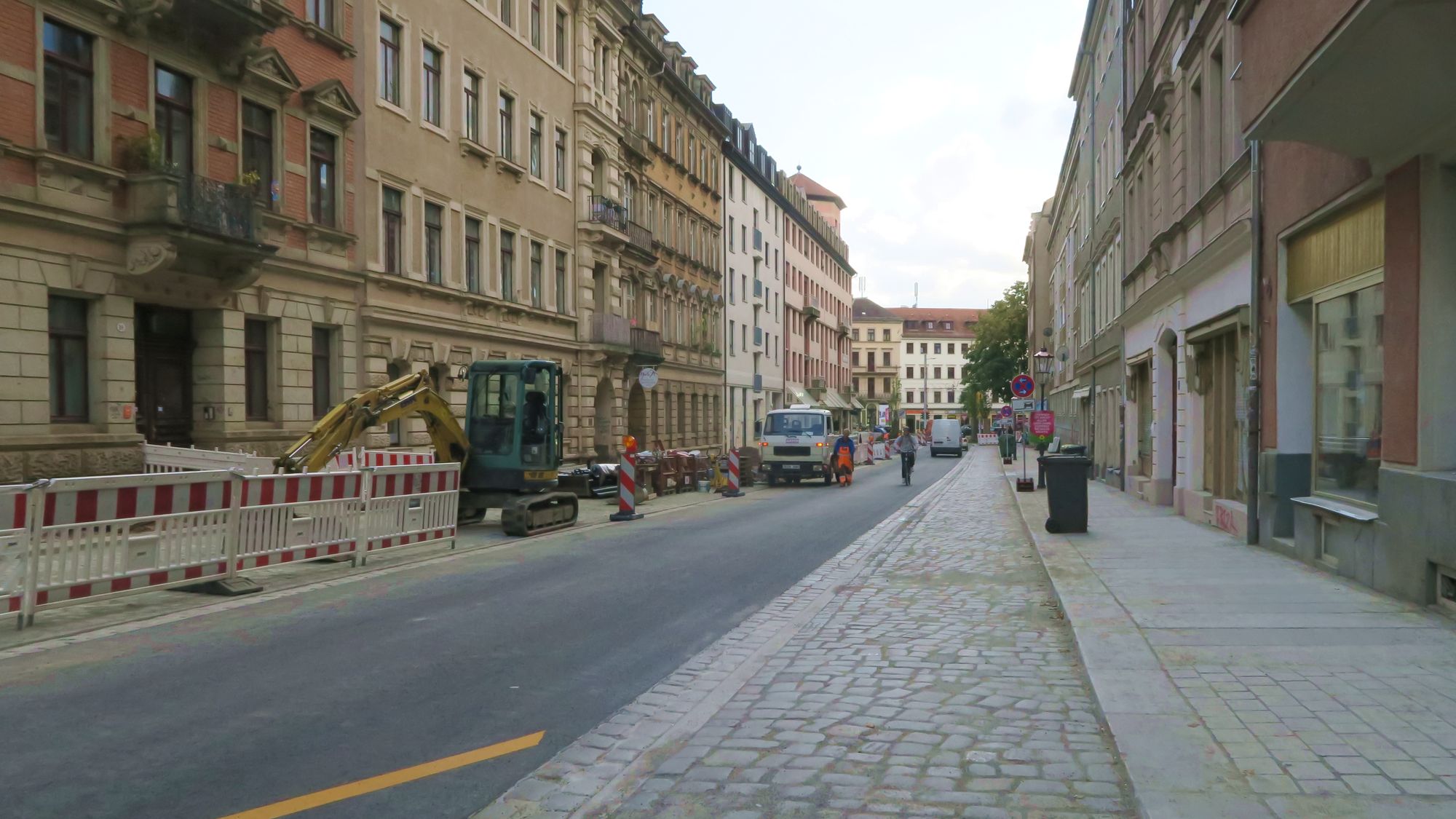Jetzt wird parallel auf der nördlichen Pulsnitzer und der nördlichen Martin-Luther-Str. saniert. Für Radfahrer ein ziemliches Problem. Das Ganze wäre vermeidbar gewesen, denn auf der Pulsnitzer wurde meist nicht den ganzen Tag wirklich durchgearbeitet.