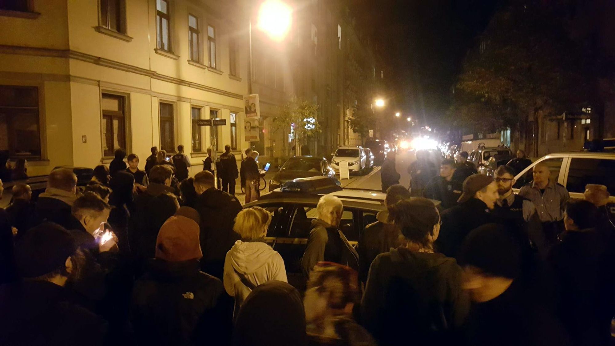 Wenig später versammelten sich weitere 60 Personen auf der Kreuzung Fichtenstraße/Hechtstraße und protestierten lautstark gegen die Abschiebung. Gegen 21.15 Uhr trafen sich die beiden Gruppen zu einer Versammlung am Königsbrücker Platz. Polizeibeamte sicherten diese ab. Gegen 21.45 Uhr endete die Versammlung ohne Zwischenfälle.