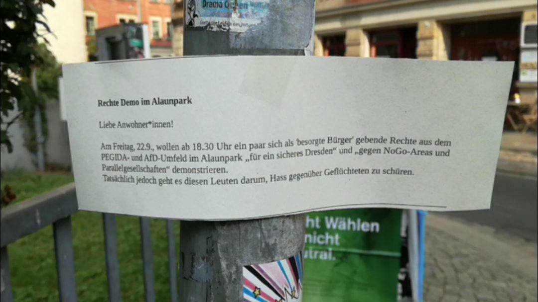 In der Neustadt hängen nun an einigen Stellen Zettel, die über diese Demonstration aufklären wollen. „Ein paar sich als ‚besorgte Bürger‘ gebende Rechte aus dem Pegida- und AfD-Umfeld wollen demonstrieren“, heißt es da unter anderem.