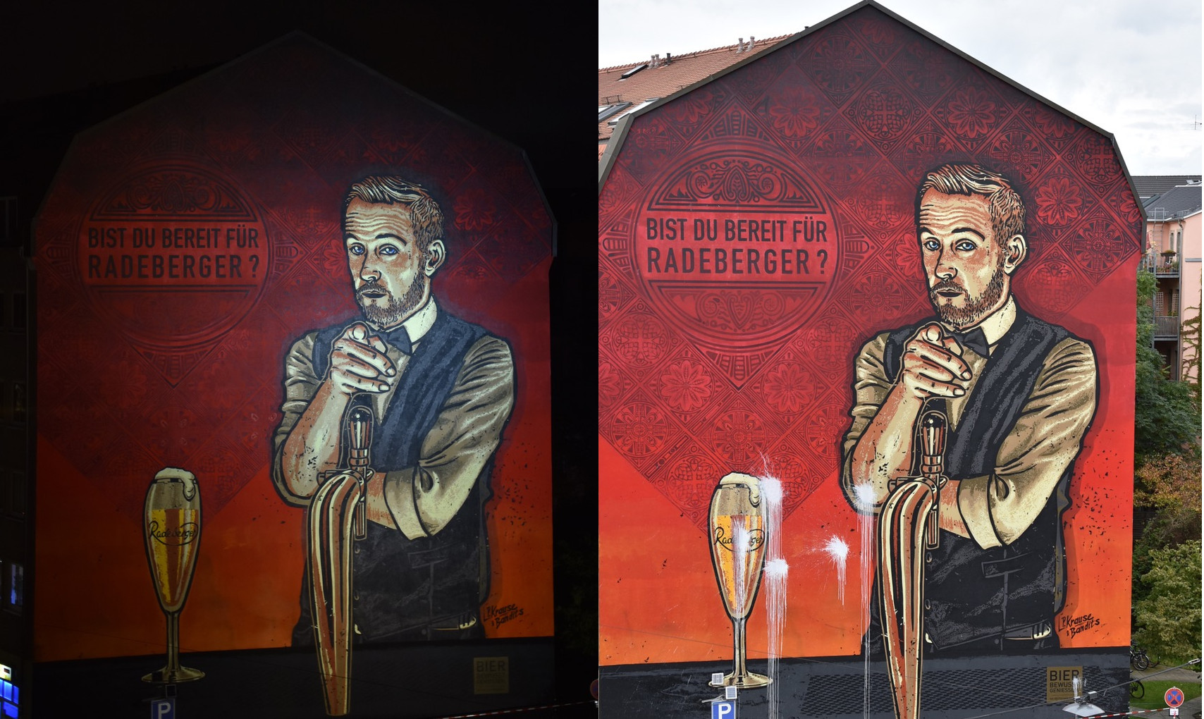 Naja radeberger schmeckt ***entfernt***. Davon abgesehen wars trotzdem ne ziemlich gute Arbeit die Farbbomben sicher nicht verdient hat. Vor allem nicht weil eh nur temporär. Neue hässliche Gebäude müssen ja noch reichlich in die Neustadt gebaut werden. ;)