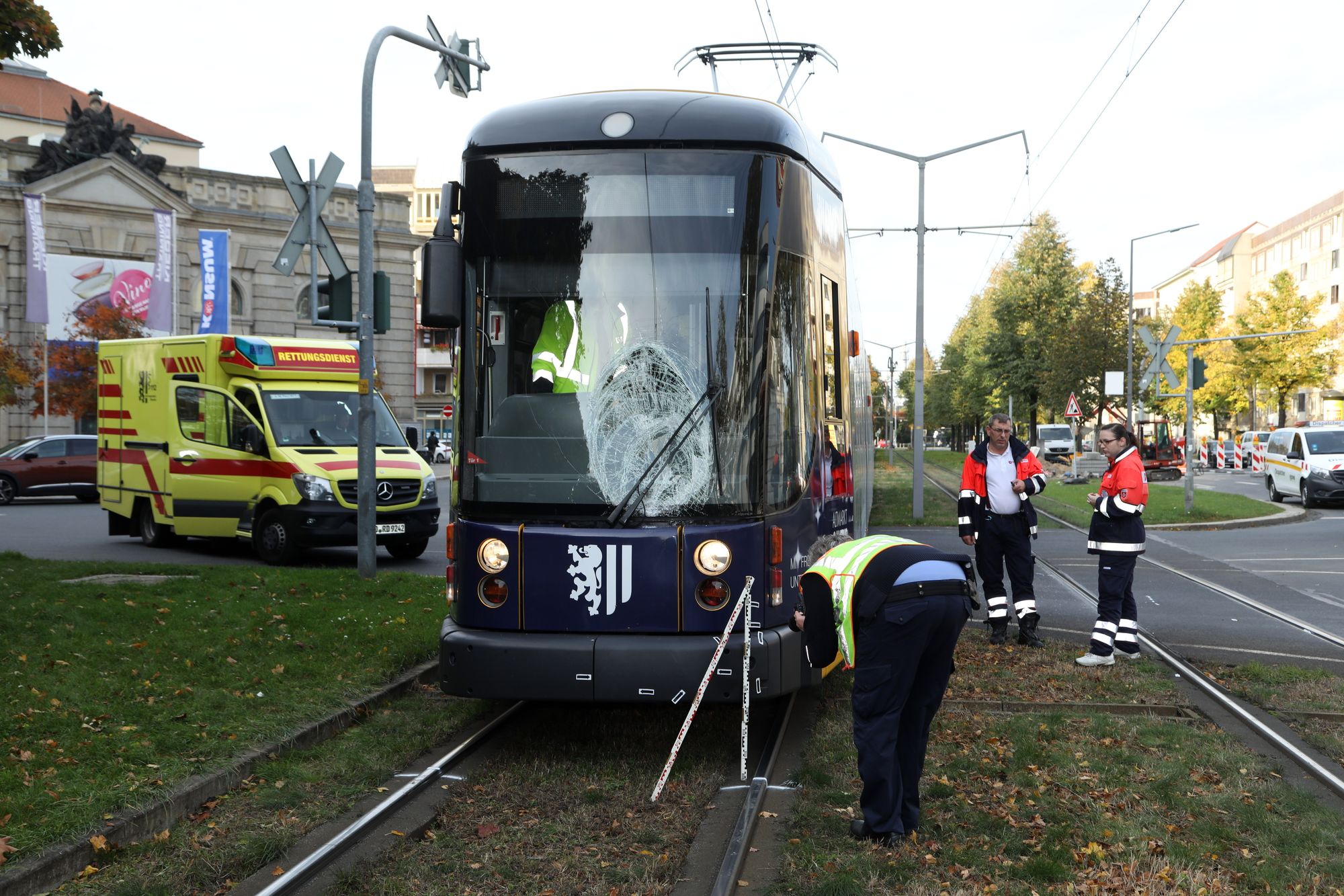 Der Mann überquerte die Straßenbahngleise der Albertstraße in Höhe Ritterstraße. Dabei wurde er von einer herannahenden Straßenbahn der Linie 7 erfasst. Er musste mit schwersten Verletzungen in ein Krankenhaus gebracht werden. Der Fahrer der Straßenbahn erlitt einen Schock und wurde ebenfalls medizinisch betreut.