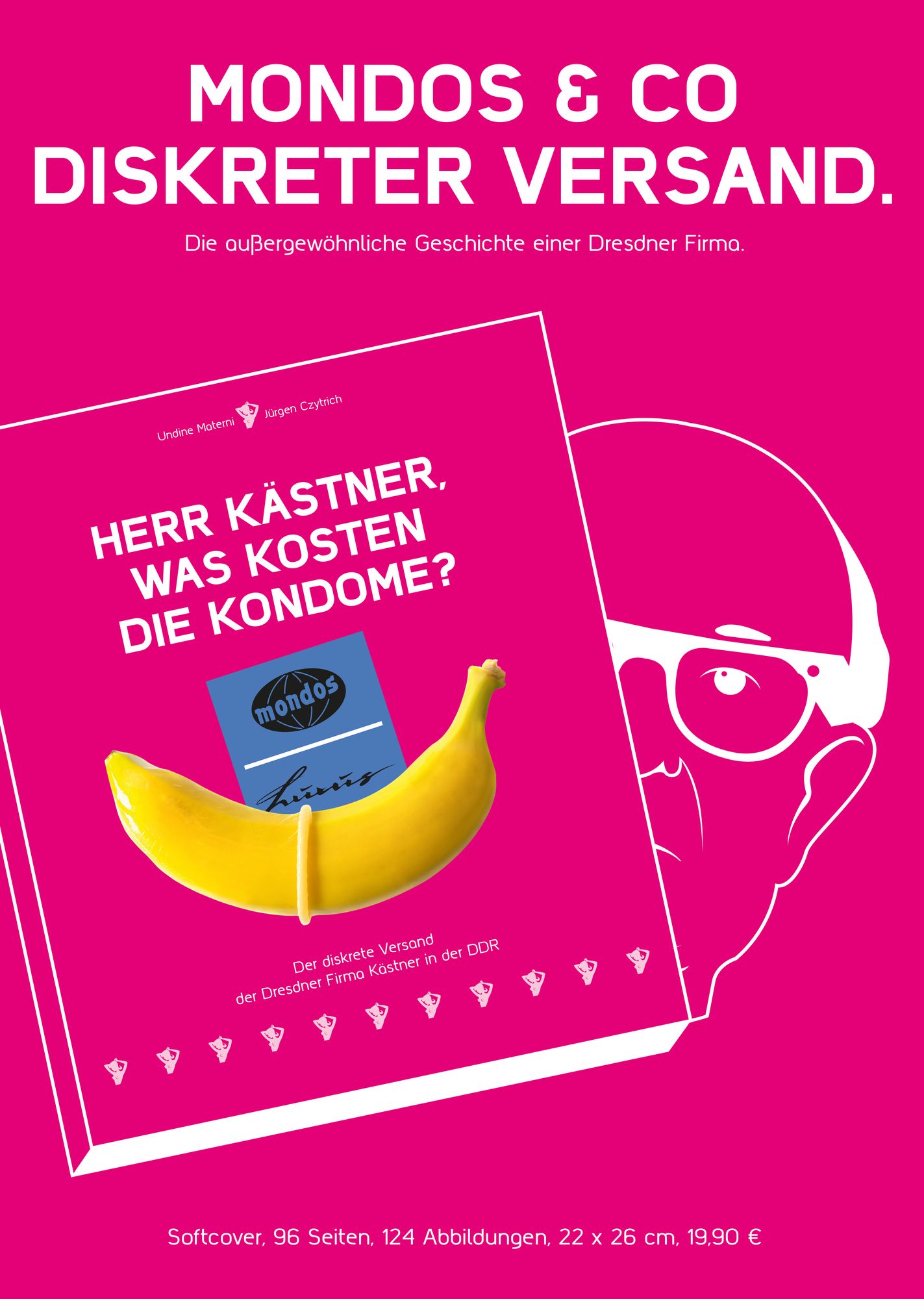 Hugo Kästners besonderes Augenmerk galt kosmetischen Produkten. So weit so alltäglich. Doch besonders die Vermarktung des mechanischen Verhütungsmittels „Mondos“ erfolgte mit Witz und Fantasie und natürlich äußerst diskret im Versand. Mit kleinen Zeitungsanzeigen warb der Kästner-Versand regelmäßig. Von der Louisenstraße aus wurde nahezu die ganze DDR beliefert. „Mondos“ – das war das Synonym für Kondome – so wie „Spee“ für Waschmittel.