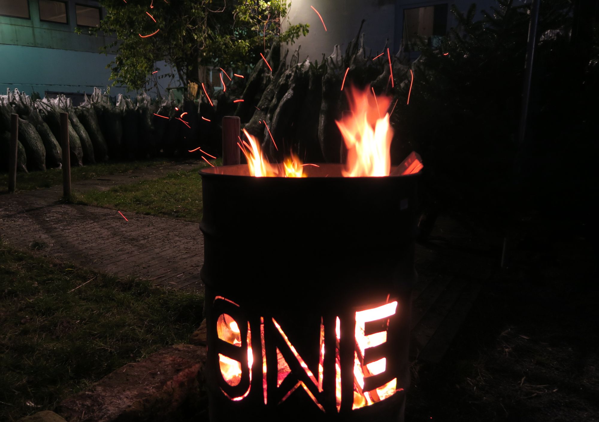 Hinter dem alten Heizhaus, das einst, die Putzi-Werke mit Wärme versorgte, hat er eine gemütliche Kuschel-Ecke eingerichtet. Hier kann man sich an der Feuertonne mit einem Glühwein aufwärmen, bevor es an die Inspektion geht. „Wir haben alles – von kleinen Ein-Meter-Zwergen bis hin zum 4,50-Meter-Riesen“, schmunzelt Sven. Die Neustädter, so weiß er, bevorzugen Bäumchen um die zwei Meter Höhe.