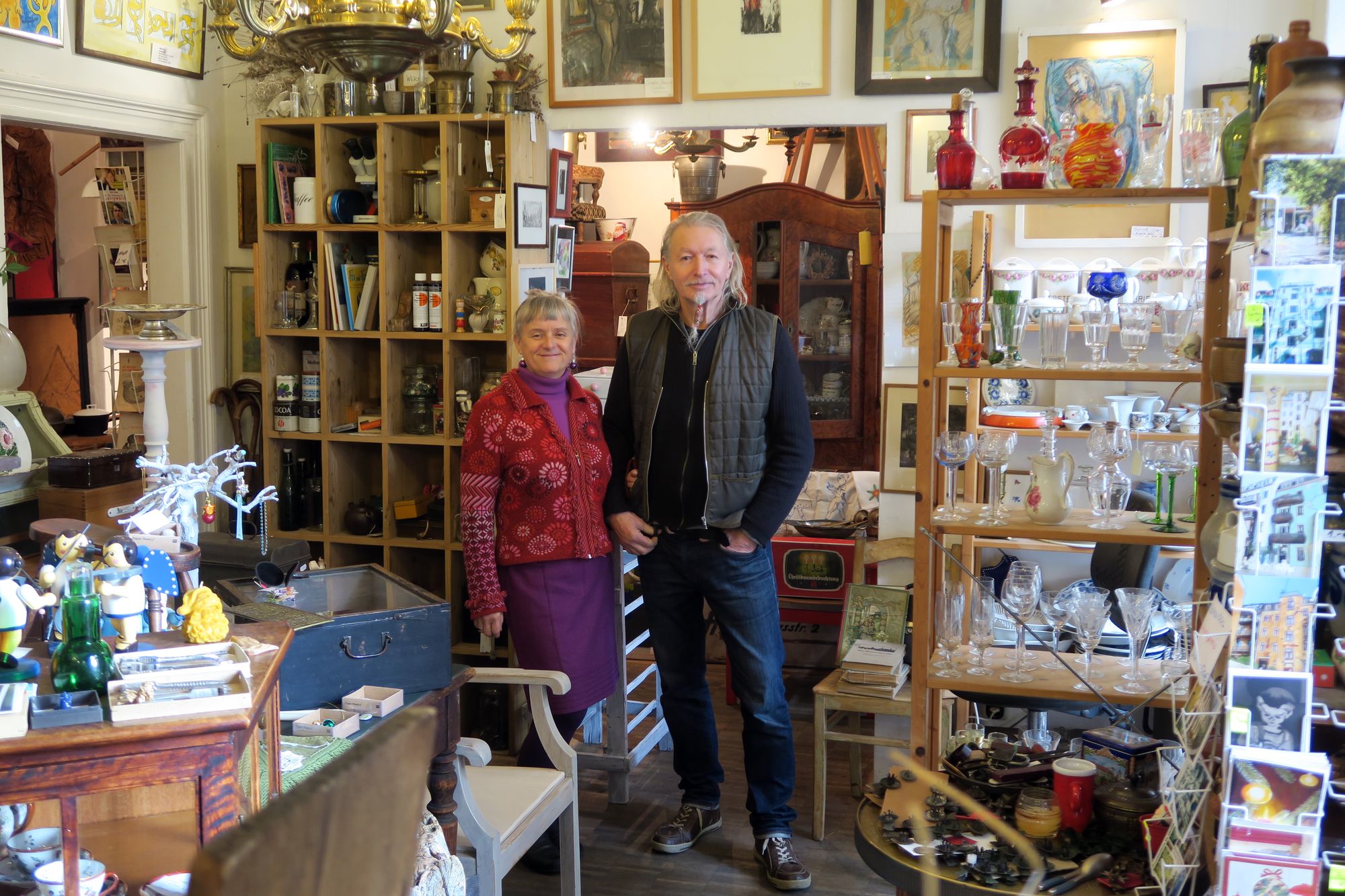 1998, also vor fast 20 Jahren, haben sie zusammen das Lädchen „Antiquitäten im Kunsthof – Fischer“ eröffnet. „Wir waren die Ersten hier“, berichtet Andrea, zumindest der erste Laden. Nebenan das „El Perro Boracho“, dass vor ein paar Jahren zur „Lila Soße“ geworden ist, das hatte schon ein paar Tage vorher geöffnet.