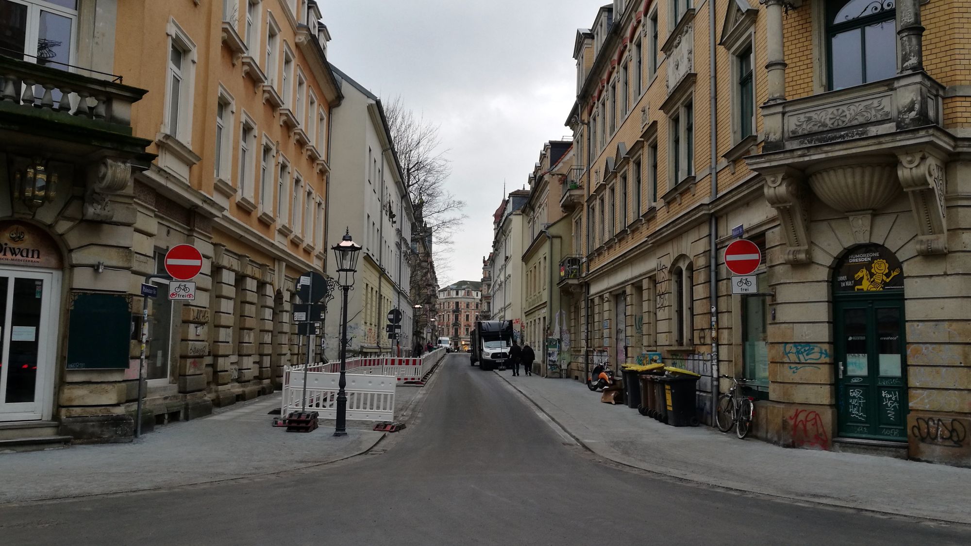 Zweieinhalb legale Parkplätze sind unmittelbar an der Einmündung zur Louisenstraße entstanden, ansonsten soll die „Pulsnitzer“ zwischen Louisenstraße und Martin-Luther-Platz frei vom ruhenden Verkehr bleiben.