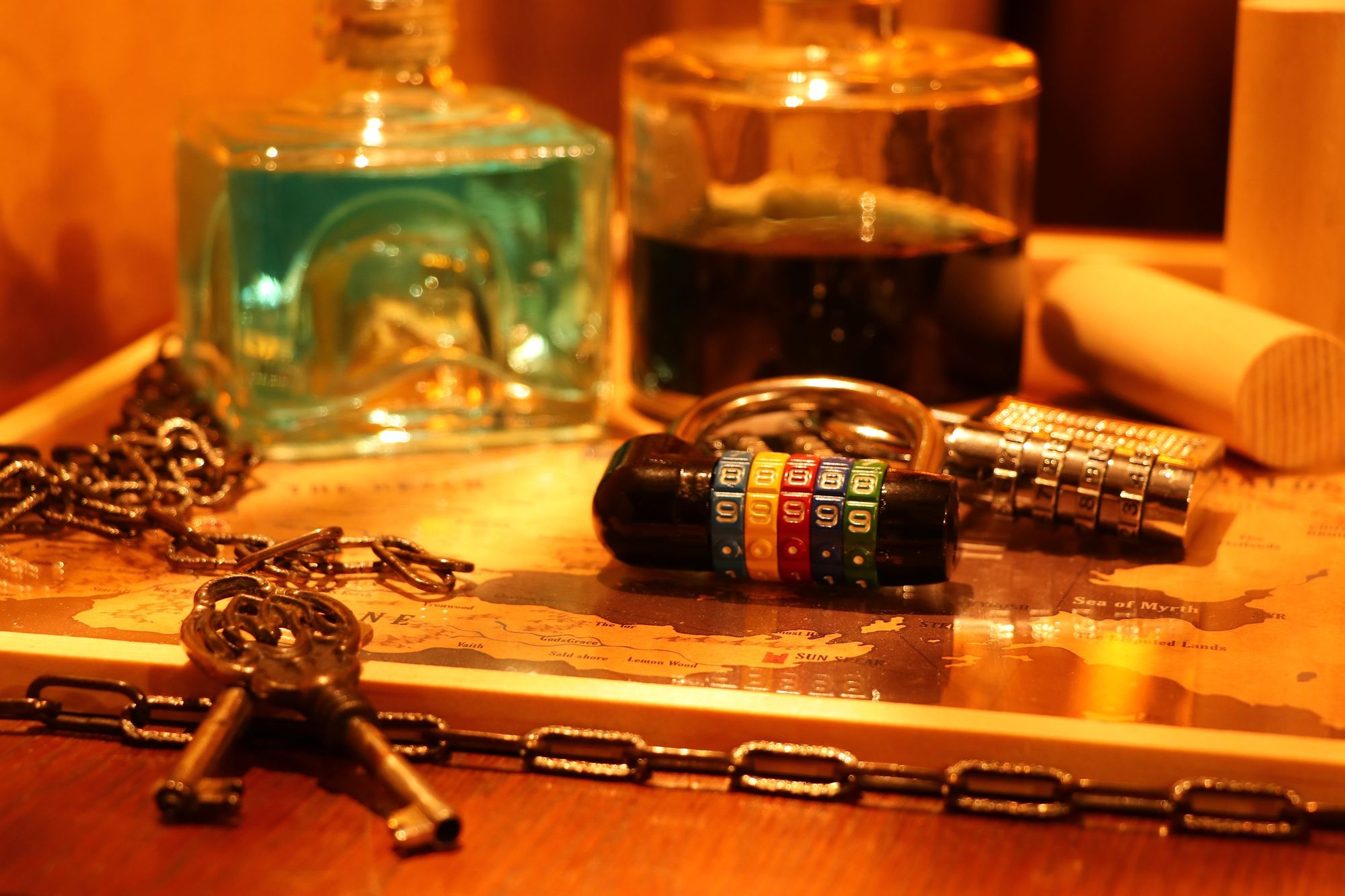 Eine zweite Besonderheit hebt Christian hervor: „Wir sind der erste Mittelalter-Escape-Room.“ Allerdings geht es weniger um Chlodwig, Otto oder Karl den Großen als vielmehr um Alchemie. Die Teams haben eine Stunde Zeit, um das Arbeitszimmer des alten Meisters (Maester genannt) zu durchsuchen und vermeintliche Hinweise zu entdecken. Durch knobeln, tüfteln und dem Austausch von Ideen nähern sich so die Teams Schritt für Schritt der finalen Lösung – dem legendären Seefeuer, dass die Stadt vor der sicheren Eroberung rettet.