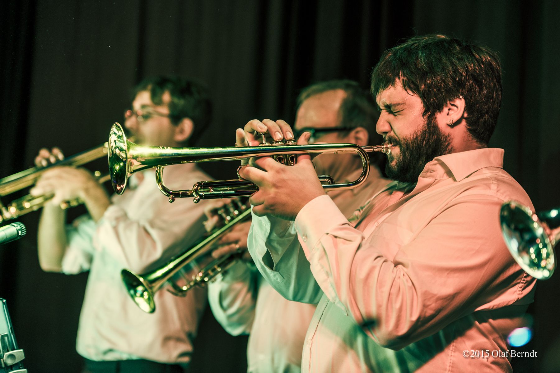 Die Männer an den Posaunen sind Trompeter, durchweg…