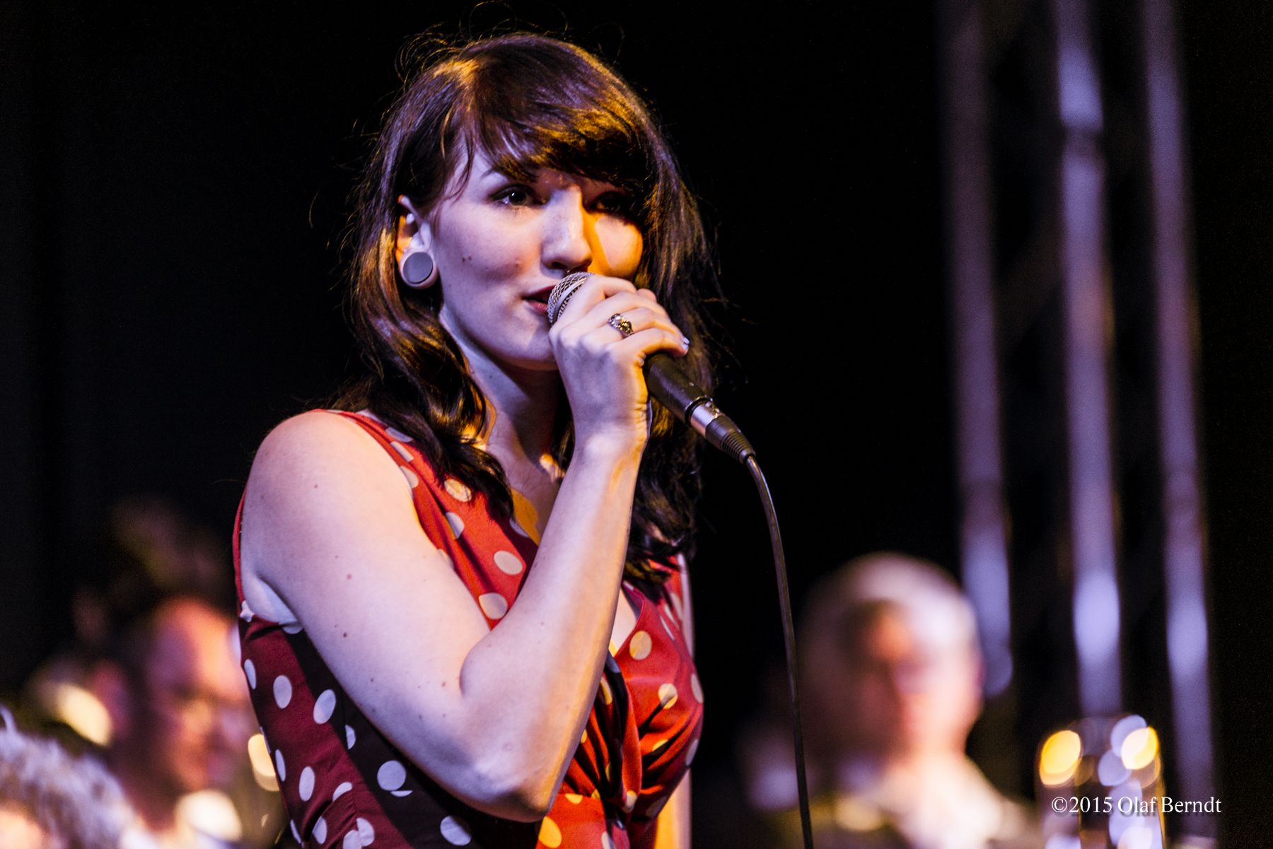 Neben dem Dirigenten greift Veronika Kralacek zum Mikrofon. Jetzt wird es gefühlvoll – „Fever“. Wow. Für einen kurzen Moment schließe ich die Augen und denke, ich bin in New Orleans. Aber dann stoppt das Orchester, ich blinzle, der Traum ist weg, es wird neu angesetzt. Ist ja ’ne Probe.