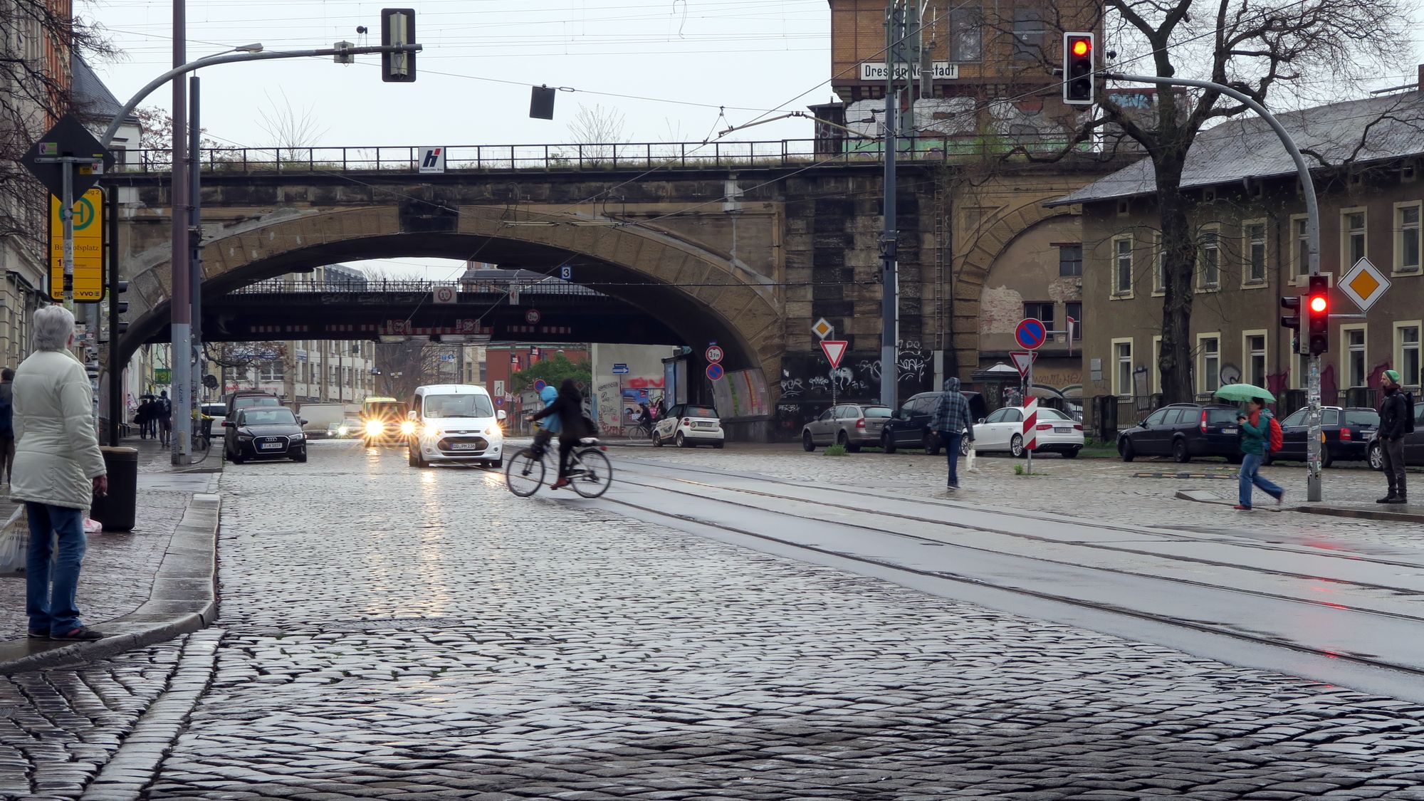 Unabhängig vom gestern gescheiterten Antrag besteht der Auftrag an die Stadtverwaltung, eine kurzfristige Verbesserung der Verkehrssicherheit für den Radverkehr am Bischofsplatz umzusetzen. Das hatte der Ausschuss für Stadtentwicklung am 18. Oktober 2017 beschlossen, nachdem sich zwei Tage zuvor der Ortsbeirat einstimmig dafür ausgesprochen hatte (Neustadt-Geflüster vom 17. Oktober 2017). Die Pläne dafür müssen laut Beschluss heute dem Stadtentwicklungsausschuss vorgelegt werden.
