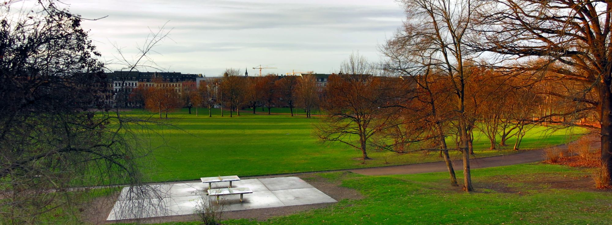 Wir spielen Tischtennis auf dem Alaunplatz. Am nördlichen Ende, bevor sich die Wiese sanft zu einem Hügel hin zur Tannenstraße erhebt. Eine kleine Fläche ist hier betoniert, zwei Tischtennisplatten stehen drauf. Und das vertrackte Pling, wegen dem ich den Satz verloren habe rührt von einer Netzattrappe aus Metall her.