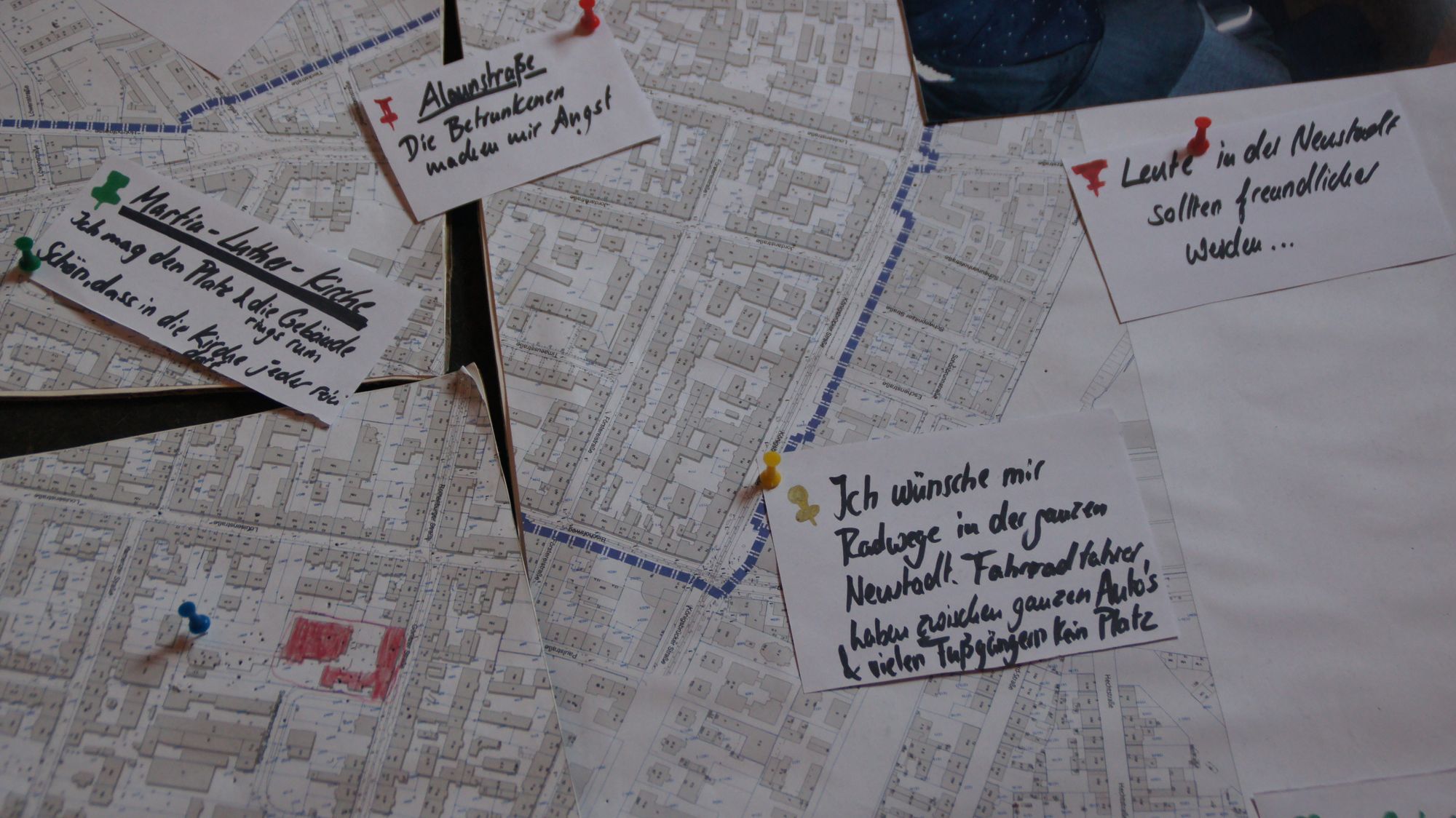 „Dir fehlt doch was?!“, lautete das provokante Motto, unter dem die jungen Teilnehmer innerhalb der Projektwochen mit wachen Augen durch das Viertel gingen, beurteilten, was ihnen gefällt, und wo aus Kinderaugen betrachtet Verbesserungsbedarf besteht. Am gestrigen Tag betraten Entscheidungsträger den Ring, um die Ergebnisse zu begutachten und sich ihrer Umsetzung anzunehmen. Mit von der Partie waren Eva Jähnigen, Bürgermeisterin für Umwelt und Kommunalpolitik, André Barth, Ortsamtsleiter der Neustadt, Vincent Drews von der (SPD) und Tina Siebeneicher (GRÜNE) aus dem Stadtrat und Annemarie von der Jugendhilfeplanung Dresden.