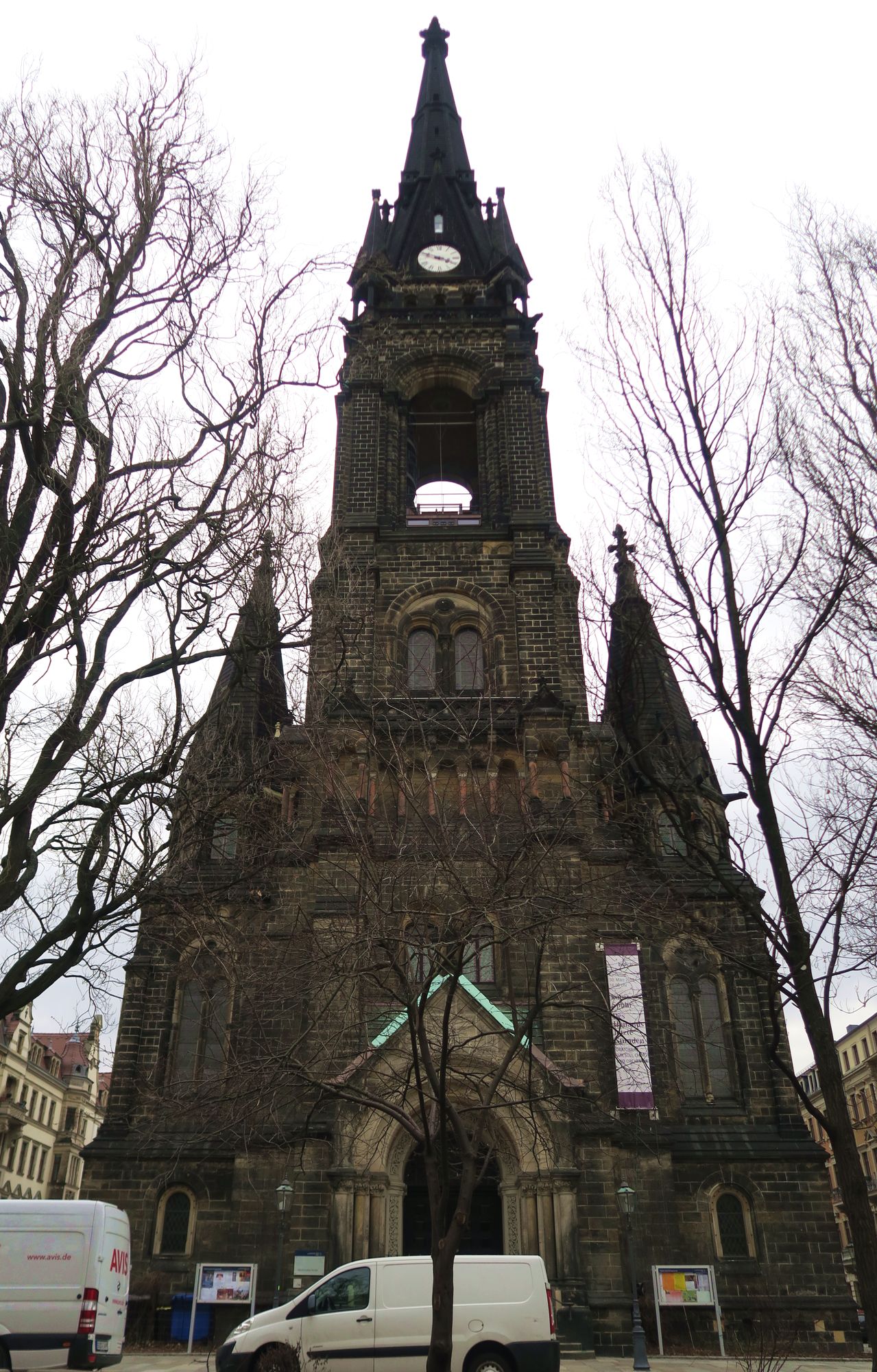 Transporter vor der Kirche sind weg. Die haben nur Instrumente und Tontechnik für das Konzert heute (Karfreitag) angeliefert.