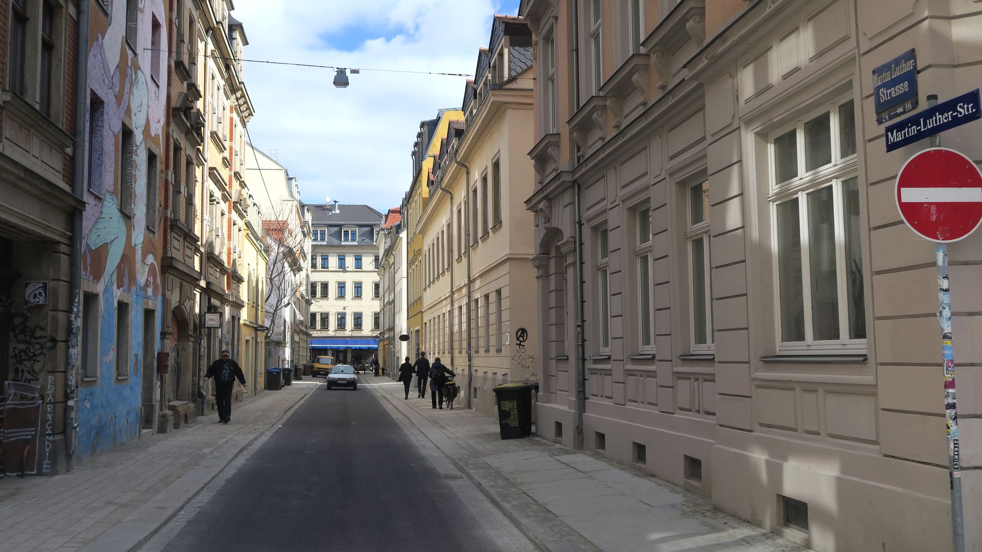 Die Martin-Luther-Straße ist eine der wichtigen Verkehrsadern innerhalb der Äußeren Neustadt um den Verkehr aus Richtung Kamenzer Straße/Tannenstraße abzuwickeln.