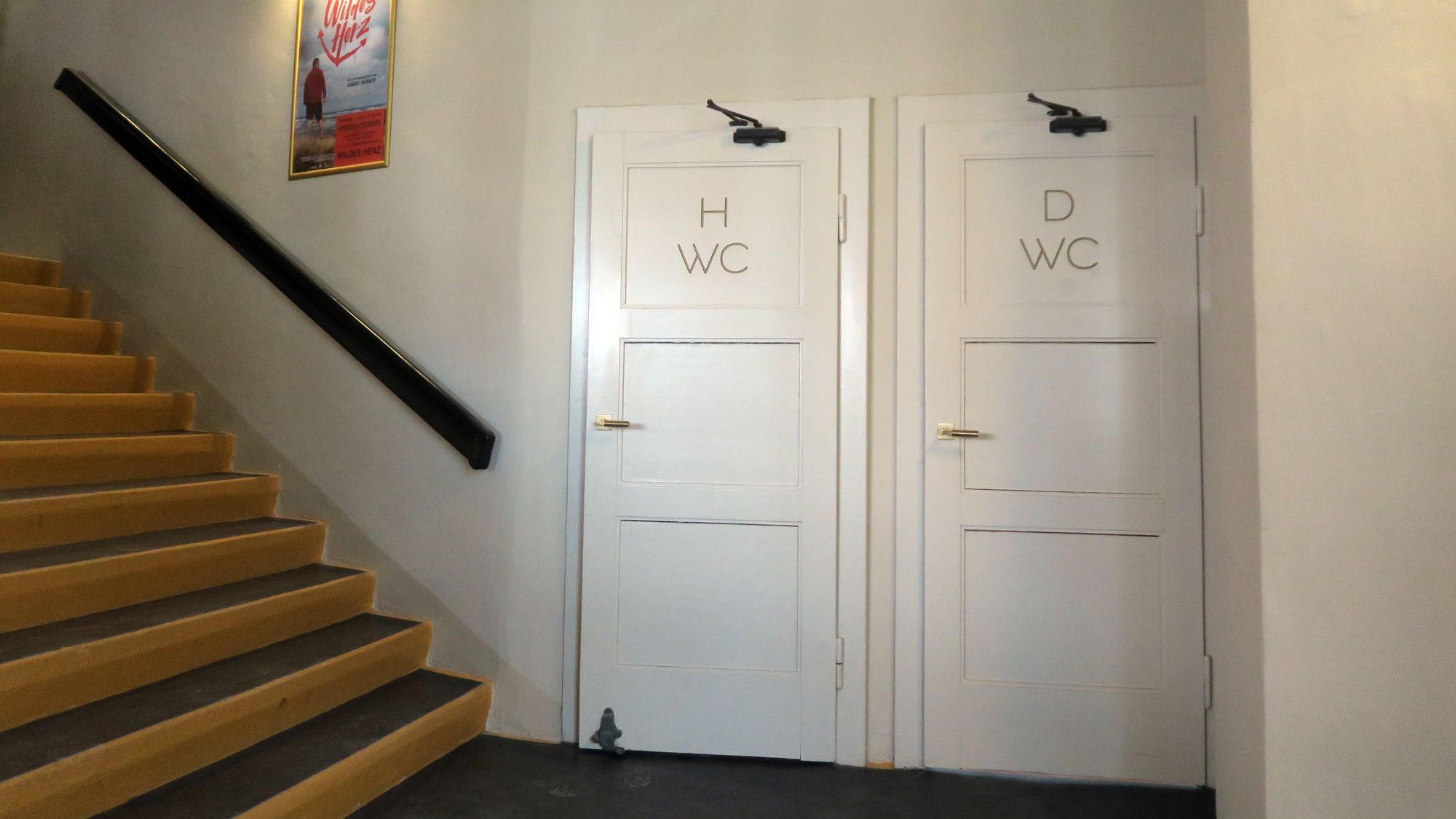 Alt und Neu in den ToilettenHalbe Treppe gibt es auch die Toiletten, stolz zeigt der Architekt auf die Originalfliesen und Fenster, die aufwändig wieder aufgearbeitet wurden. Allerdings könnte die Anordnung für Verwirrung sorgen. Denn die Örtchen für Männlein und Weiblein wurden vertauscht. Neu: Jetzt haben die Damen den Fensterplatz.Die Gründe für die Verzögerungen sind vielfältig. Zum einen gab es bauliche Überraschungen, zum anderen wollte und konnte Ostertag nicht auf die vielen Veranstaltungen verzichten. Aber nun blicken die Beteiligten optimistisch nach vorn. Das Ergebnis bis jetzt kann sich sehen lassen.