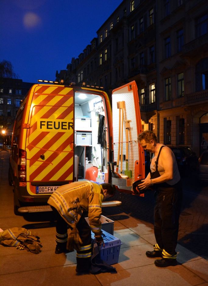 Als er unten ankam, gab es erstmal lautstarken Beifall von den Gästen der Bar Holda. Nach einer reichlichen halben Stunde konnten die Retter mit dem geborgenen Falken wieder abrücken. Der kommt nun erstmal in die Vogelaufzuchtstation nach Kaditz. Dort wird untersucht, ob er Verletzungen hat.