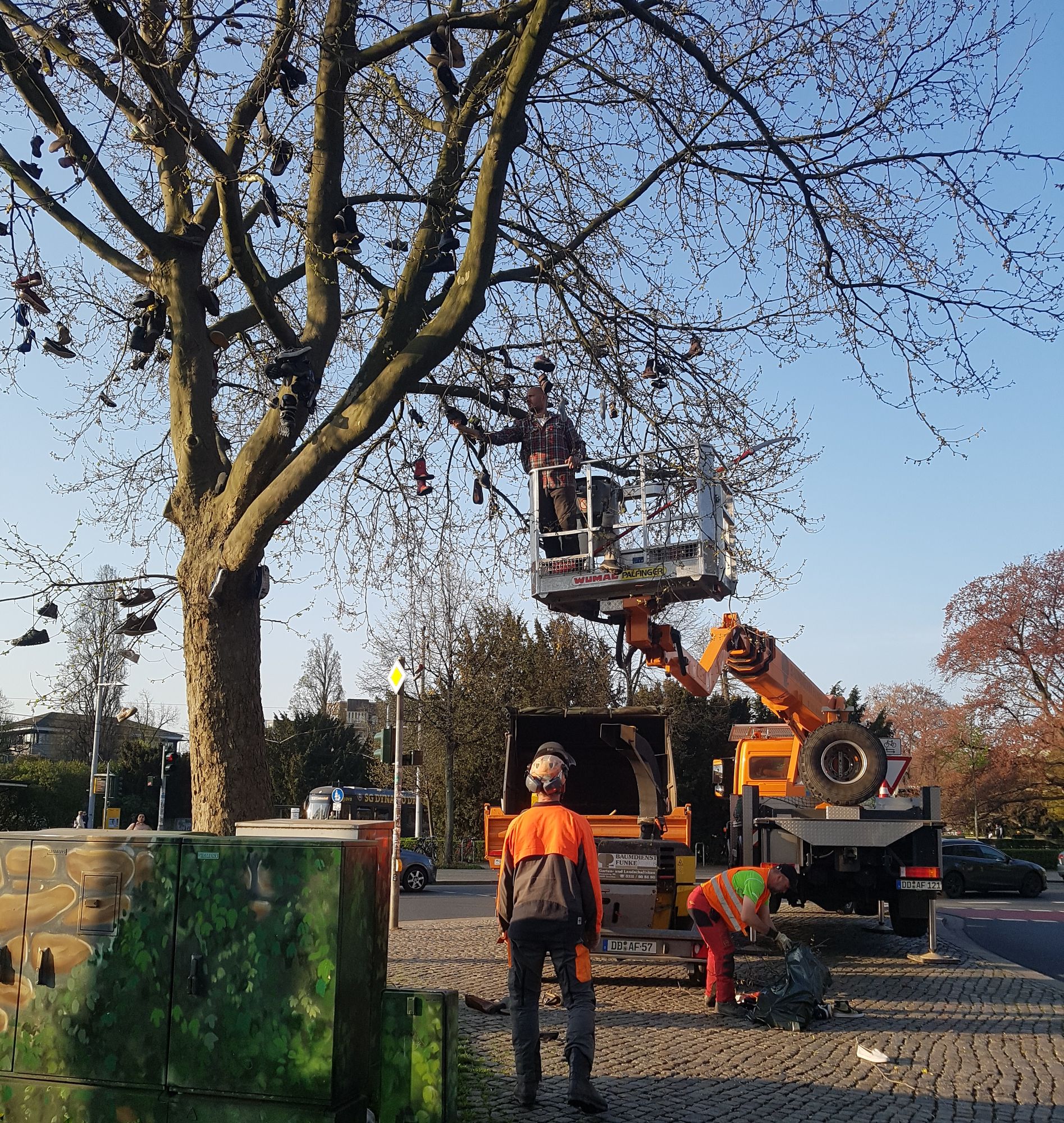Die abrechenden Äste und gegebenenfalls herumfliegende Schuhe könnten Personen und Sachwerte erheblich gefährden, so die Stellungnahme der Stadtverwaltung.