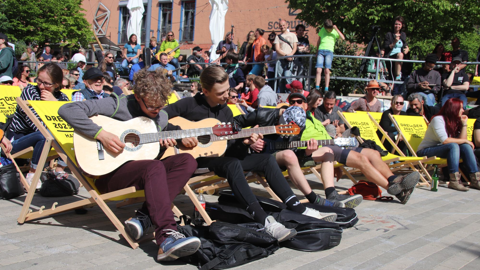Die fünfte Auflage des Festivals, das gleichzeitig in Wrocław und Dresden stattfindet, lockte heute erneut zahlreiche Schaulustige auf den Platz vor die Scheune. Schon ab 13.30 Uhr war ein gitarrenlastiges Programm zu hören.