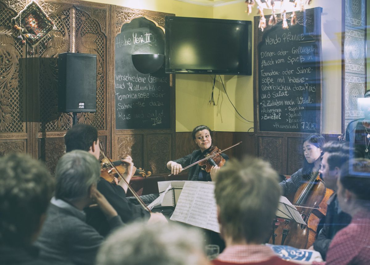 Klassische Musik für Anfänger könnte man vermuten, denn die Sets sind stets nur eine halbe Stunde lang. Begonnen wird jeweils 19.30, 20.30 und 21.30 Uhr. Pausen dazwischen sollen den Ortswechsel ermöglichen, ohne Teile des nächsten Programms verpassen zu müssen. Theoretisch zumindest, praktisch waren im vergangenen Jahr die meisten Kneipen, Imbisse und Bars so voll, dass es schwer war noch ein Plätzchen zu ergattern.