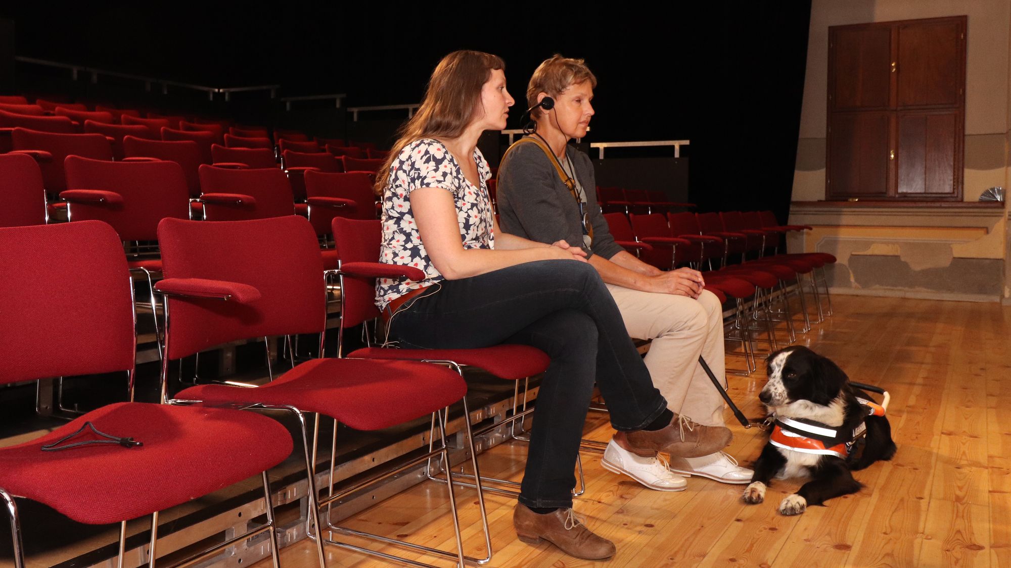 Außerdem gibt es für blinde und sehbehinderte Besucher vor dem Stück eine etwa zehnminütige Einführung in das Stück und die Charaktere. Wenn die Besucher wollen, können sie an einer Bühnenführung teilnehmen, um das Bühnenbild zu ertasten. Während des Stückes bekommen die Besucher Kopfhöhrer und Anke Nicolai wird live beschreiben, was im Stück passiert. Die Berlinerin erstellt sonst hauptsächlich solche Beschreibungen fürs Fernsehen (sie ist zum Beispiel die AD-Stimme des Dresdner und auch des Weimarer Tatorts), aber auch mit Theater und Oper hat sie schon Erfahrungen gesammelt. Sie reizt die Spontaneität, die auf der Bühne immer bleibt. Den Deutschen Hörfilmpreis, die höchste Auszeichnung auf ihrem Fachgebiet, hat sie schon sechsmal gewonnen.
