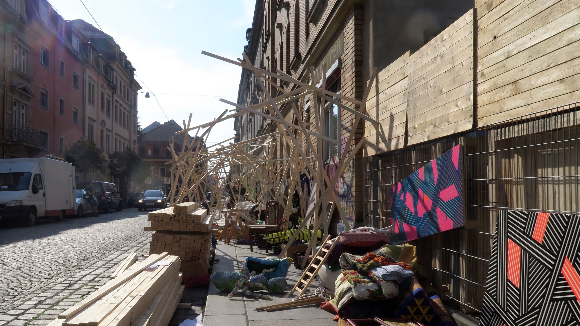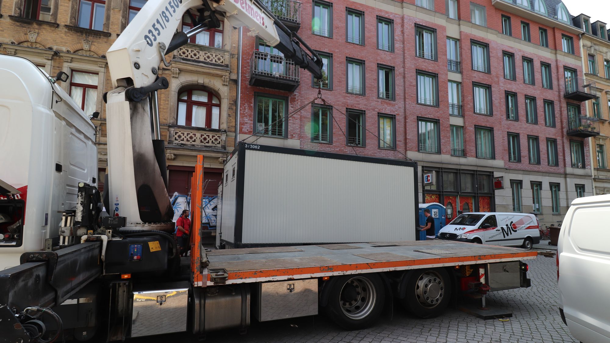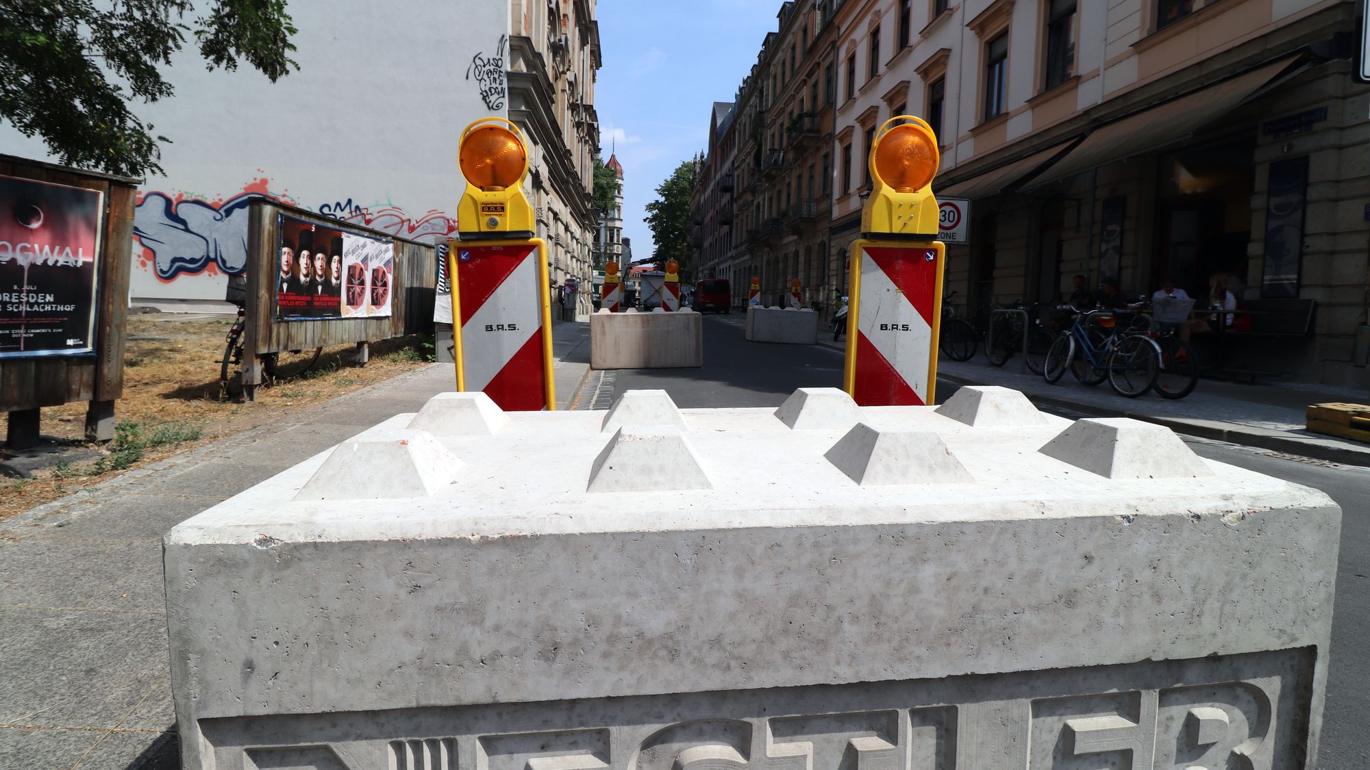 Im Moment wird an vielen Stellen aufgebaut. Der Charme des Alausebims auf der Sebnitzer Straße lässt sich schon erahnen. Bauarbeiter sichern die Baustelle vor der Schule der Louisenstraße. Nicht, dass noch jemand ein Auto in die Baugrube schmeißt. Solch wilde Zeiten gehören definitiv der Vergangenheit an.