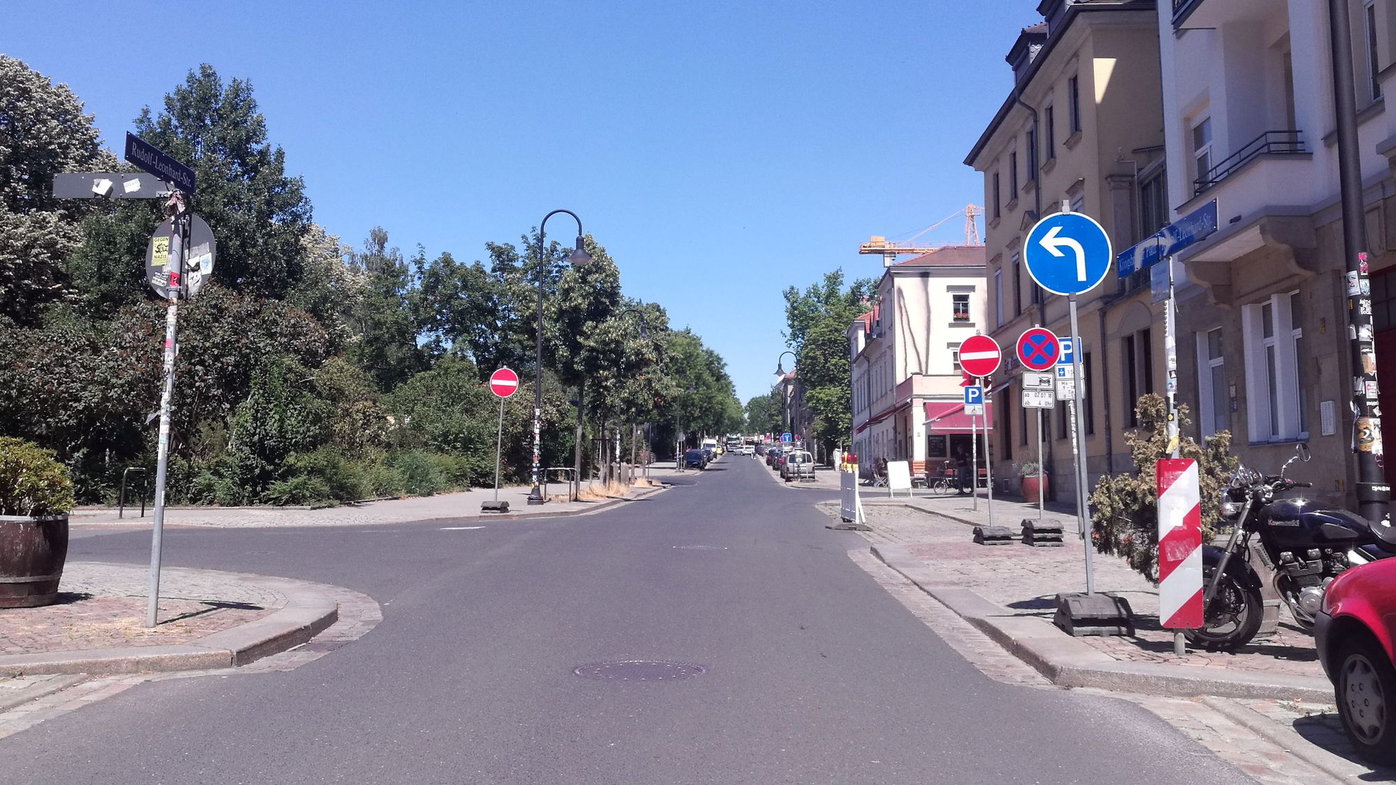 Damit die Busse dort gut durchkommen, wurde an den engen Ecken Asphalt aufgeschüttet. Außerdem ist die Tannenstraße durch die Eisenbahnbrücke nur noch ostwärts, also in Richtung Königsbrücker befahrbar.