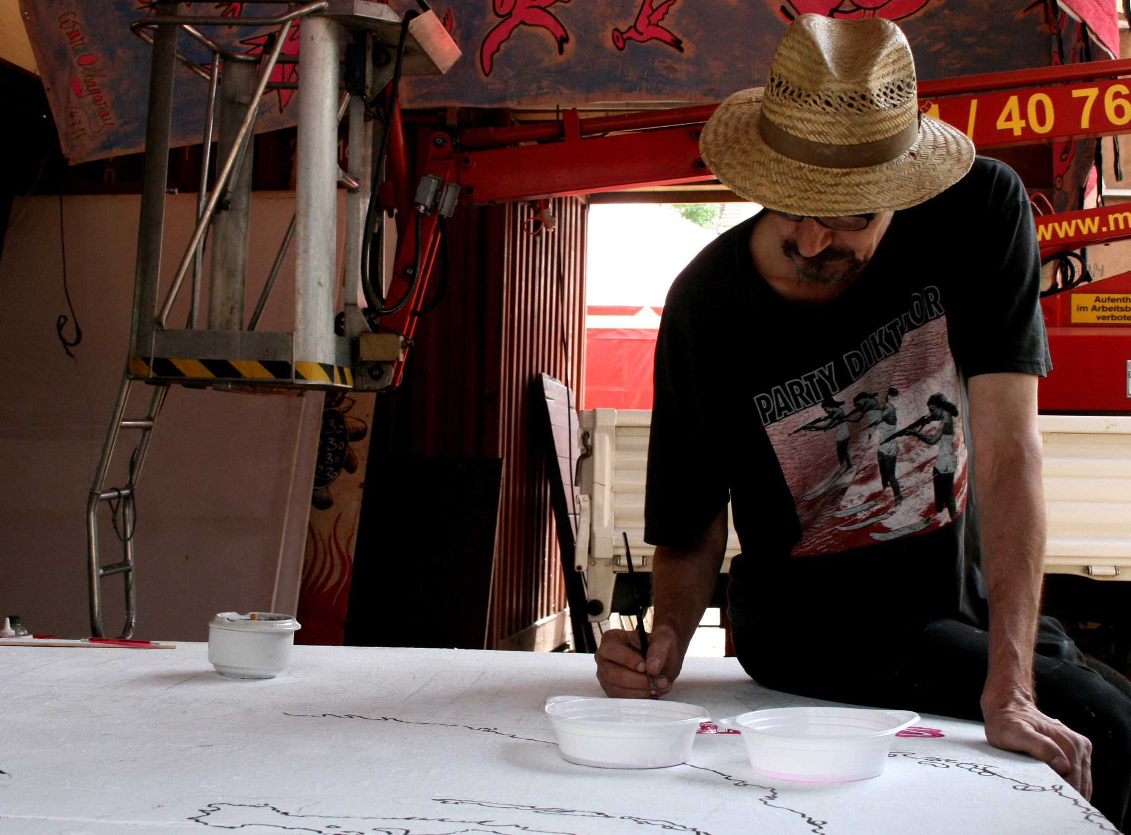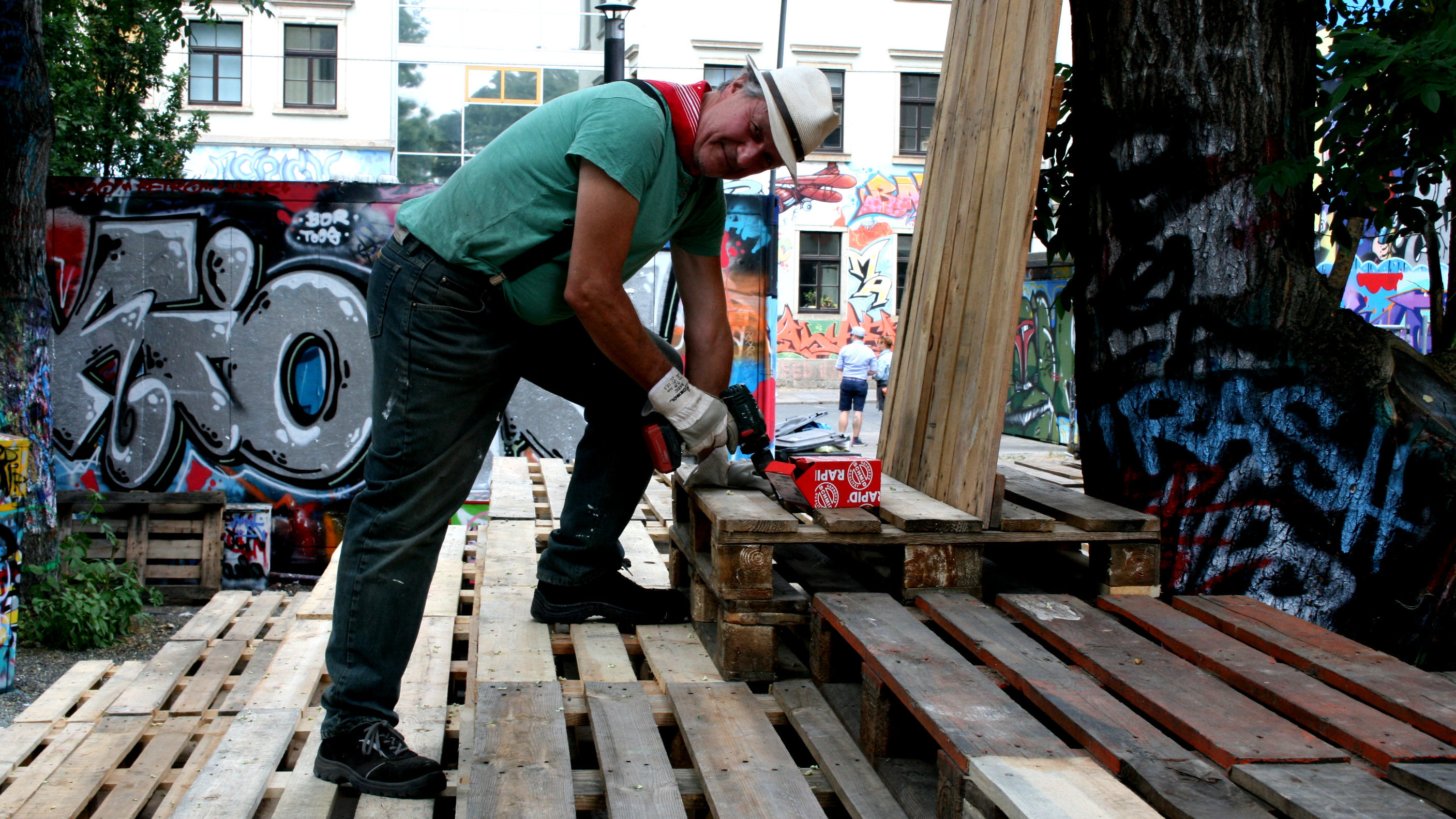 Doch bis diesen Donnerstag geht es noch heiß zur Sache. Seit Anfang Juli wird fleißig gehämmert, gemalert, geschraubt. Ungefähr 12 Helfer geben dem Schaubudensommer sein Gesicht. Der Direktor wünscht sich für dieses Jahr viel gute Energie. „So viel Energie, dass es reicht um im nächsten Jahr wieder einen Schaubudensommer zu machen.“ Doch jetzt heißt es erstmal: Hereinspaziert, hereinspaziert.