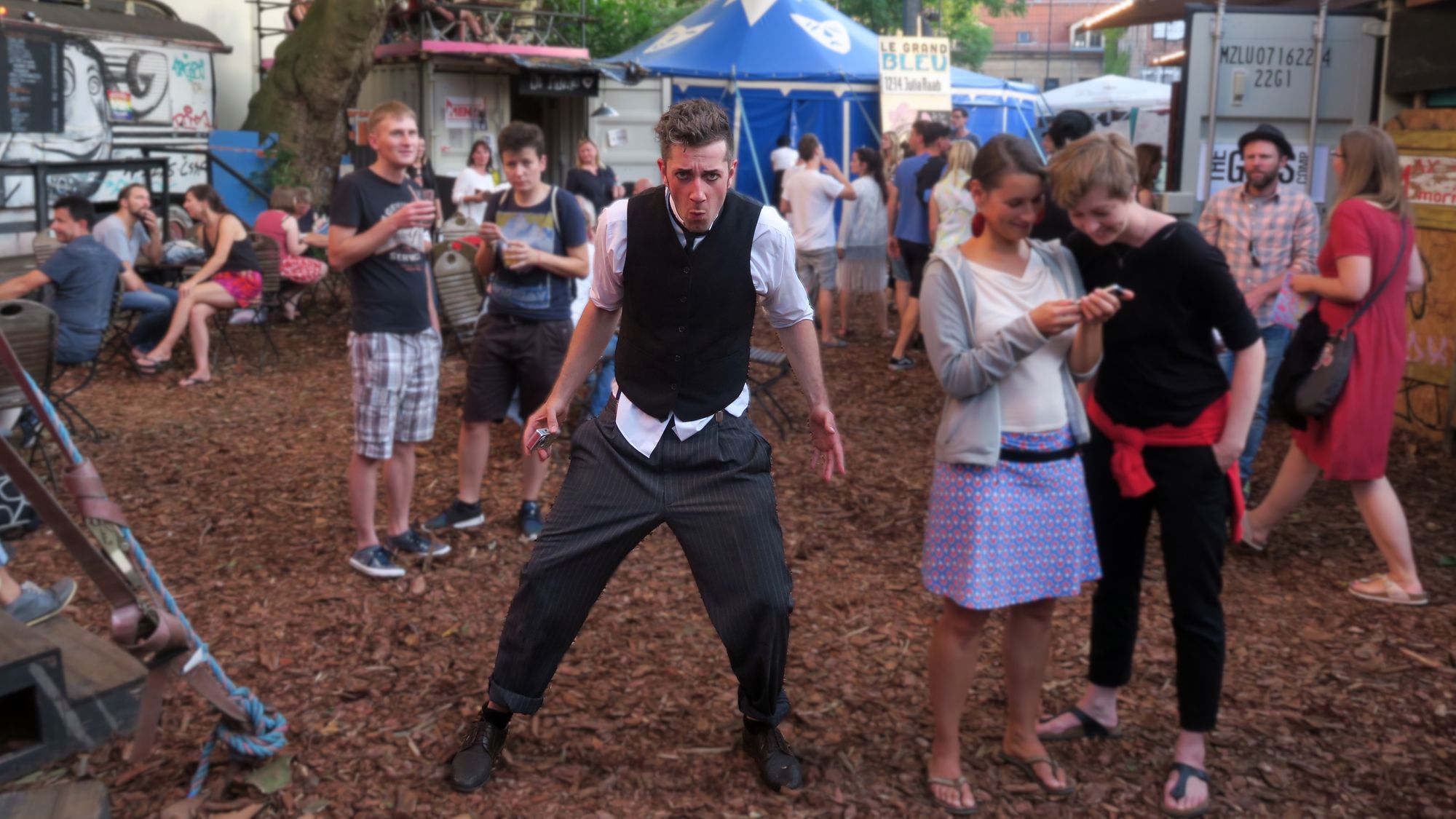 Mit wenigen Handgriffen hat er das Publikum eingefangen. Lachsalven durchströmen das Zelt bei jedem neuen Utensil, dass er in seiner Zauber-Jonglage-Show aus einem seiner vielen Koffer holt. Zwar gelang es ihm nicht einen Hasen aus einem Zylinder zu zaubern, aber vielleicht geht das ja auch mal umgekehrt. Großartig!